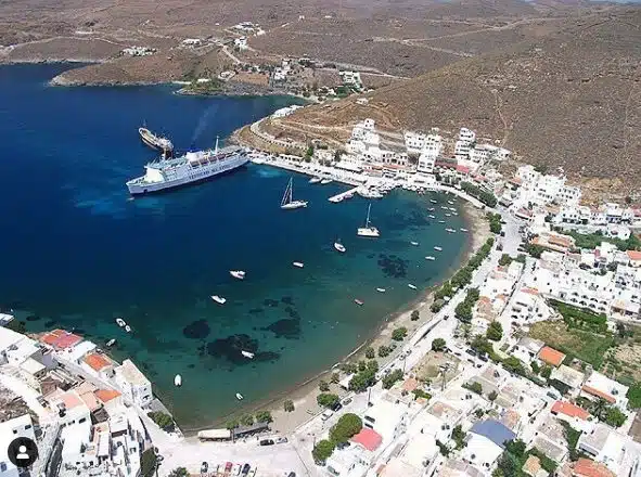 White stairs, white buildings, and the classic Greek hospitality meet you at the main anchorage in Kithnos. Taverns, cafes, and bars line the front of the village on approach from the sea. The Merikhas port provides food, gas, water, electricity, and fuel for travellers and is on the west side of the island of Kithnos. Though it is a busy port, it is still used for swimming as the water is clear. The restaurants serve fresh seafood brought in fishing boats that dock at the fishing jetty. Though this town might not look quaint, it has the typical soul of every Cycladic settlement.