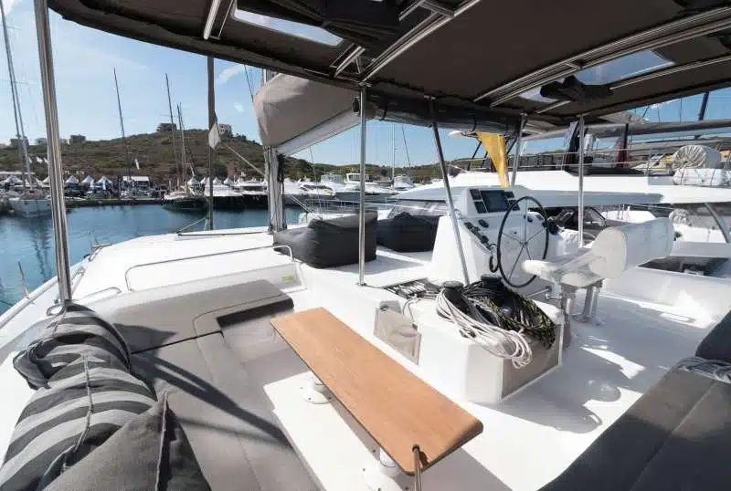 Considering the bottom has sand, it has good holding. The bay’s S side has a short mole. Many yachts can get shelter from the meltemi by squeezing in behind. You will find tavernas and minimarkets ashore that produce sound levels.