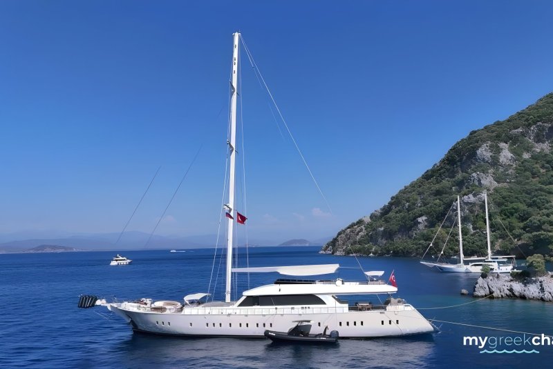 Santorini is a charter location in Cyclades, a yacht charter area in Greece.