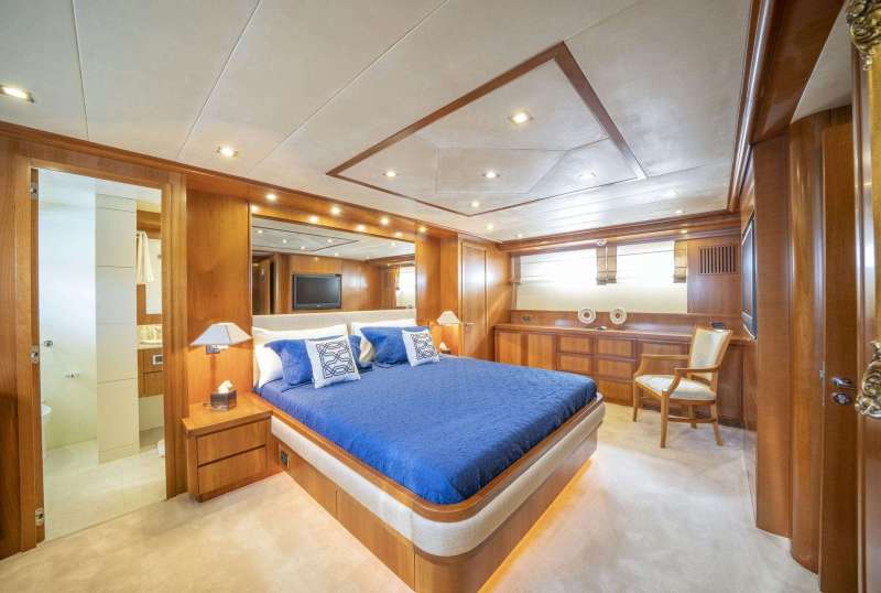 Besides being the best and biggest cabin onboard a yacht, it is also located in the best spot on the yacht, i.e., on larger motor yachts, on the top deck with direct access to the sundeck, or with a private balcony.