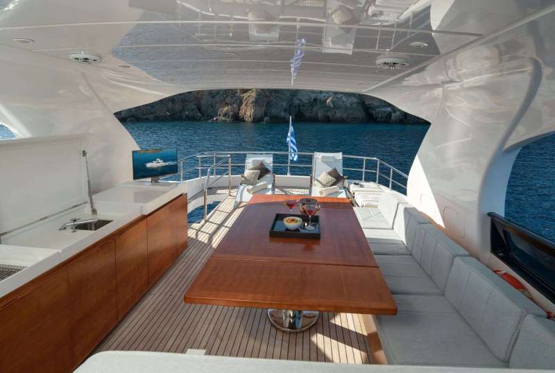 Yacht charter Greece can also head N of Kamares, where you will find the North Bay. Some cliffs surround the bay, and you can anchor your boat in 4-5m between the gullies.