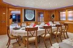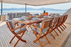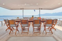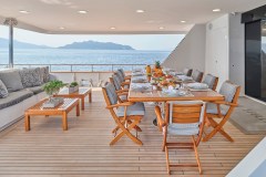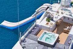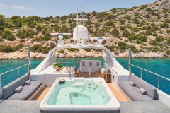 Introduced by DMA Yachting, the astonishing charter yacht BELLA STELLA is a 147 ft yacht featuring a hot tub. The most appealing features of BELLA STELLA are her absolute comfort and alfresco dining areas. BELLA STELLA spends the season in Greece. She was delivered by the famous yacht builder CRN in 1987. An elegant refit was completed in 2024. The spacious yacht layout features 7 cozy cabins and easily accommodates up to 12 guests.