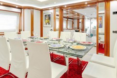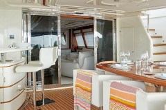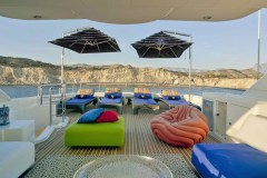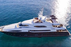 Introduced by DMA Yachting, the astonishing charter yacht BUNKER is a 132 ft yacht featuring a jetski. The primary distinction of BUNKER are her generous space and interconnection with the sea. BUNKER spends the season in Greece. She was completed by the well-known ship builder CRN in 2005. An elegant refit was finalized in 2017. The expansive yacht layout features 5 generous cabins and easily accommodates up to 12 guests.