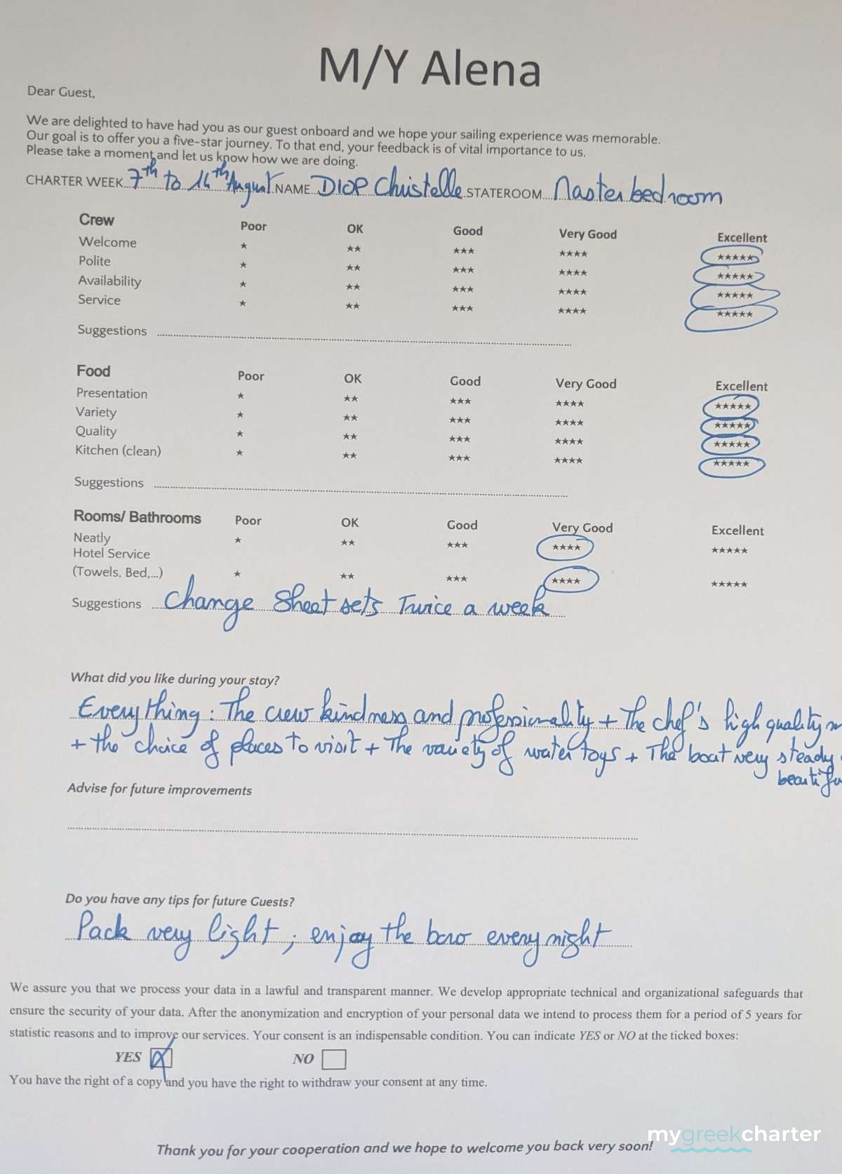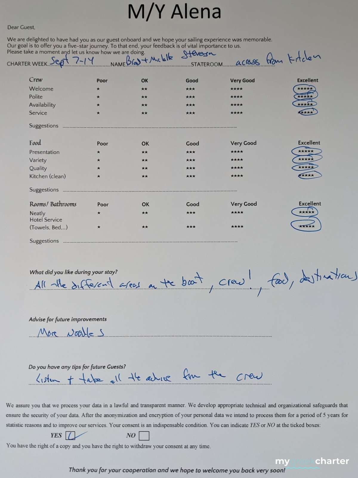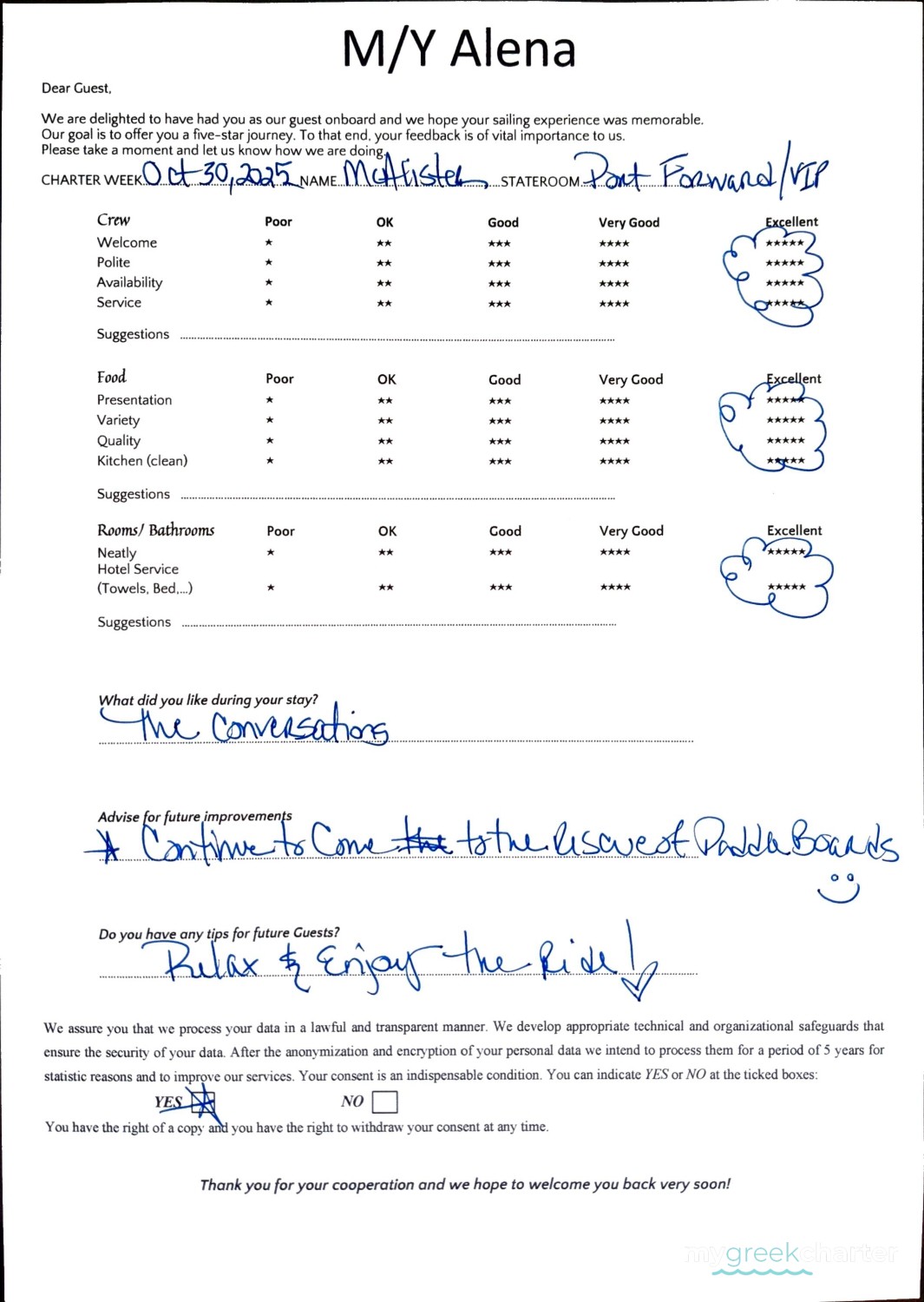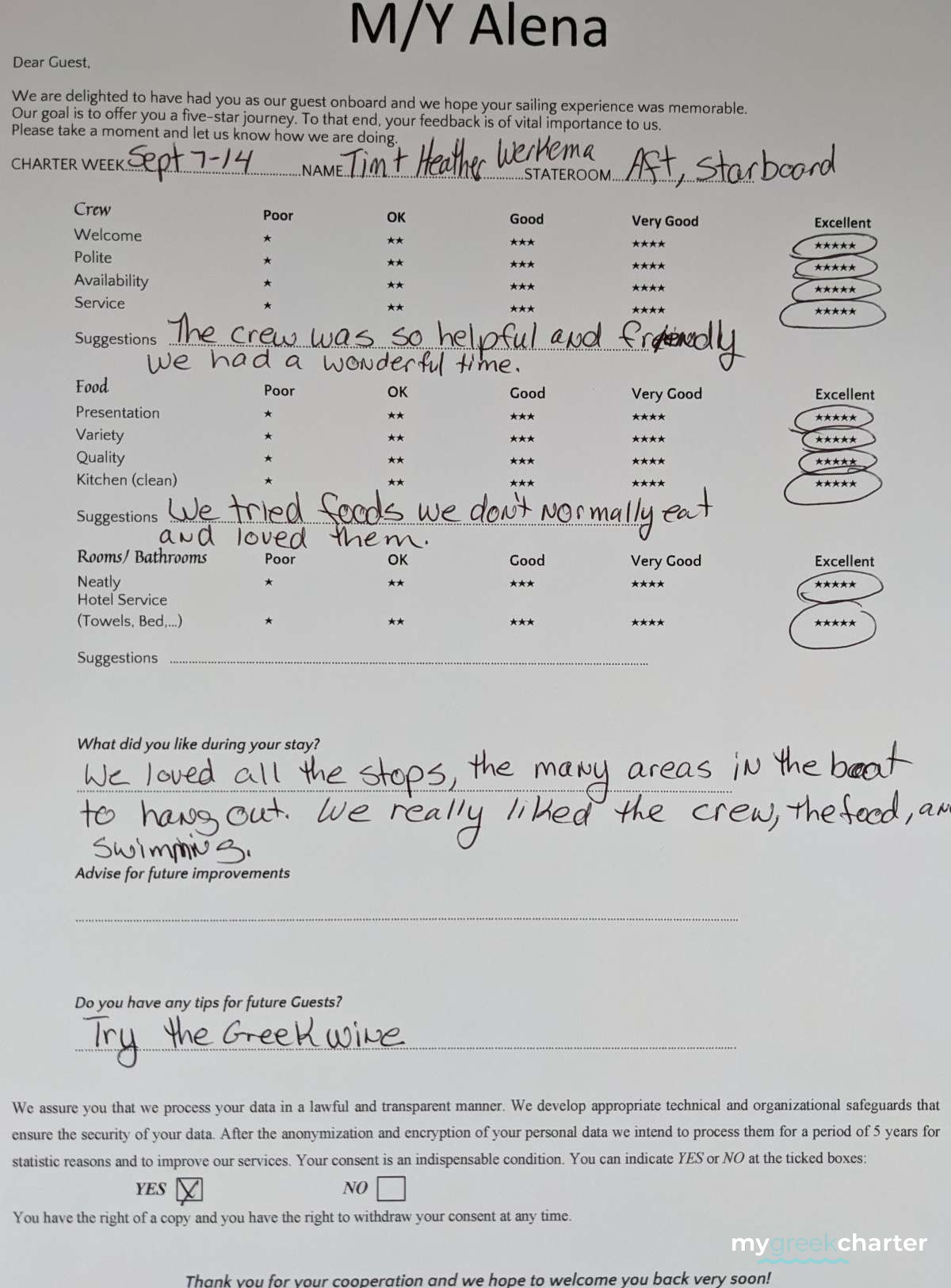 A dedicated crew of three provides exceptional service with warmth, professionalism, and harmony, ensuring a smooth and unforgettable journey from start to finish.