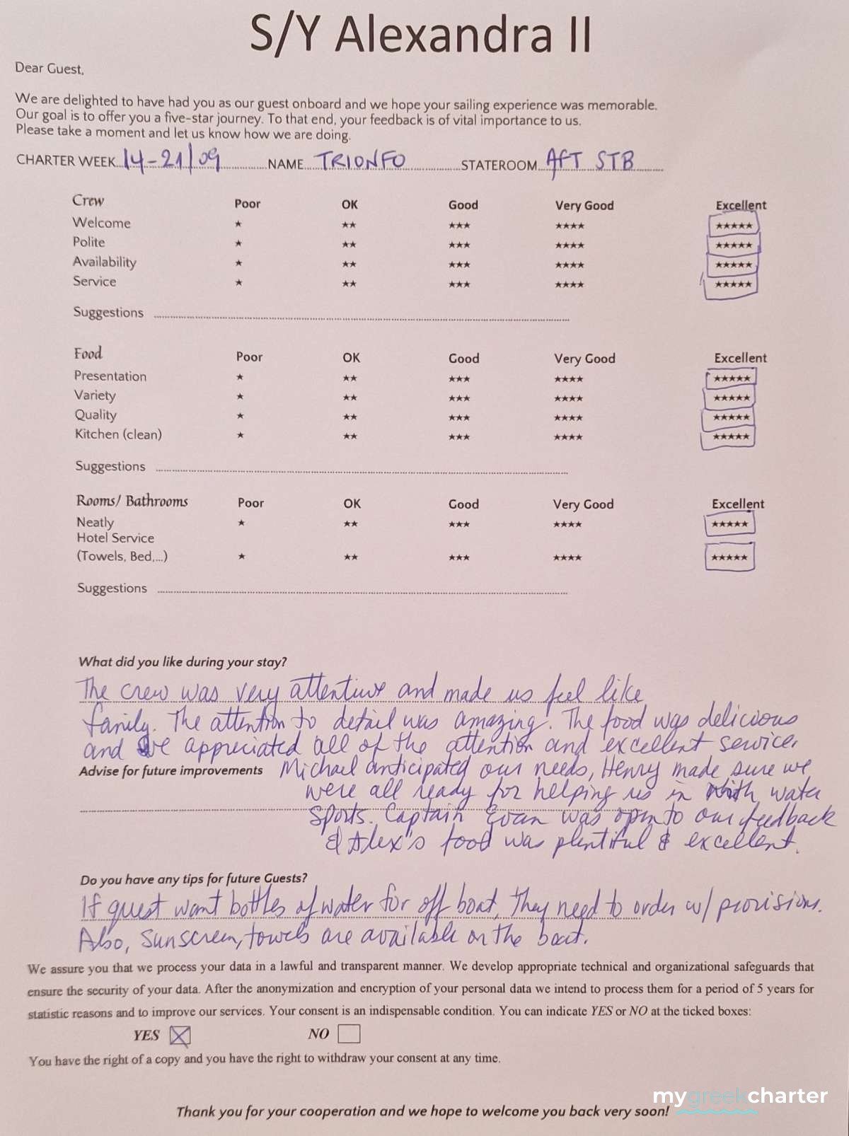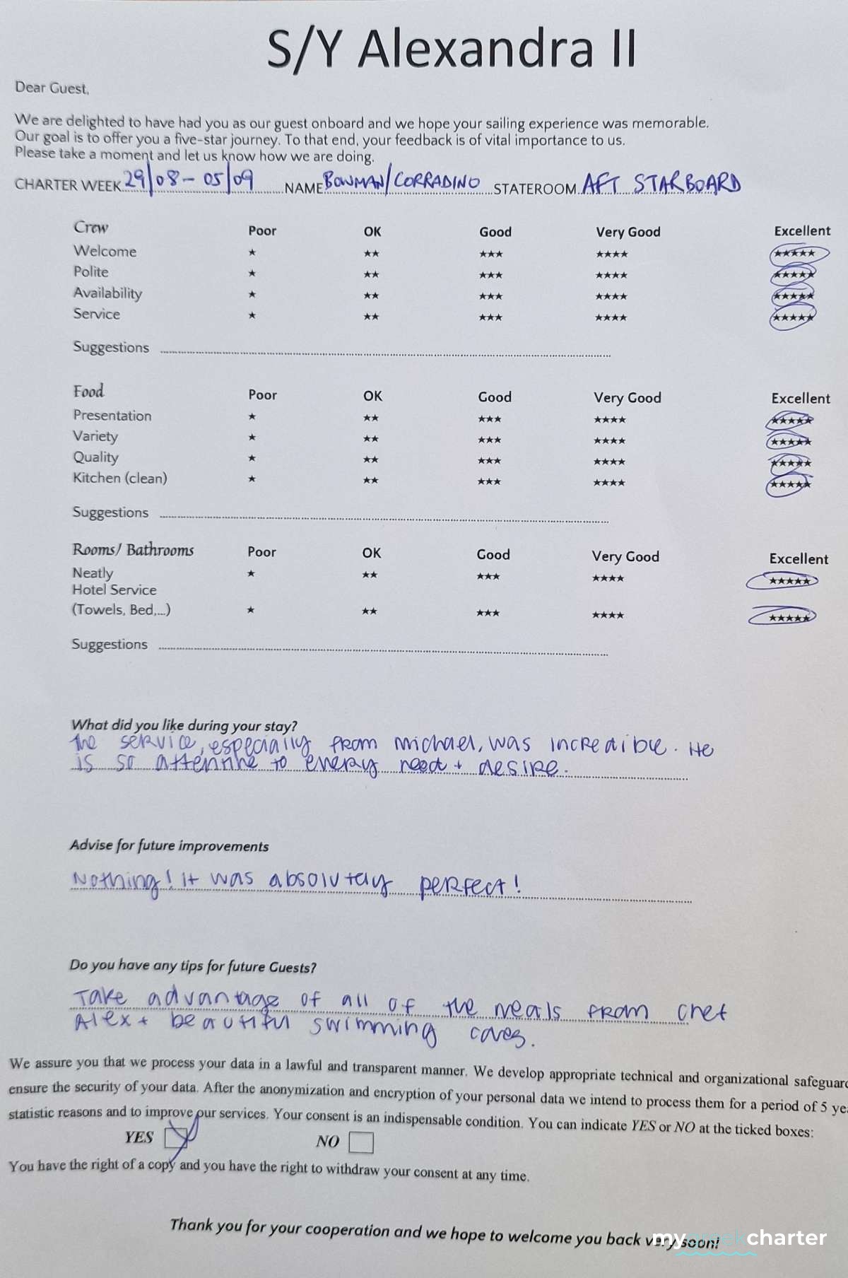 Fluent in both English (his native language) and Greek, Michael communicates effortlessly with guests, enhancing their overall experience and contributing to the welcoming atmosphere aboard Alexandra II. With a genuine commitment to hospitality, Michael is a valuable member of the crew dedicated to making every guest's journey enjoyable and memorable.