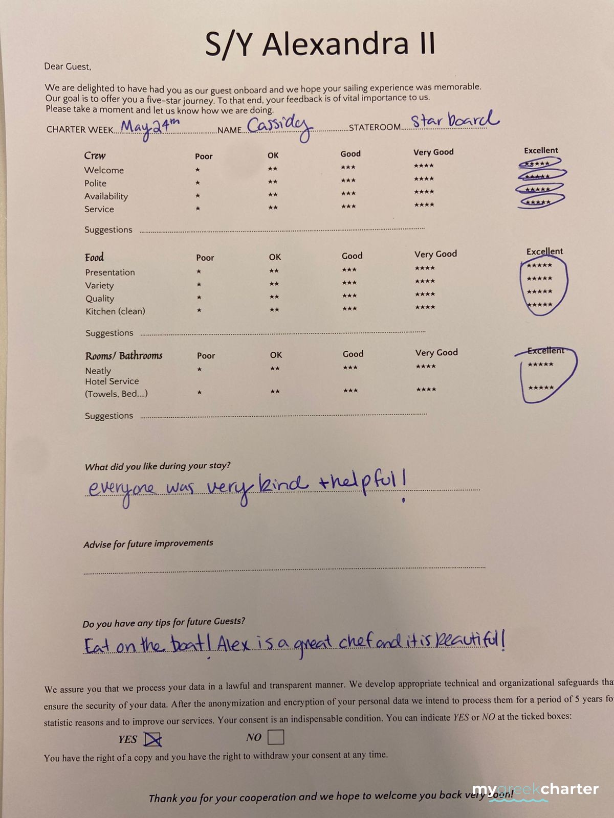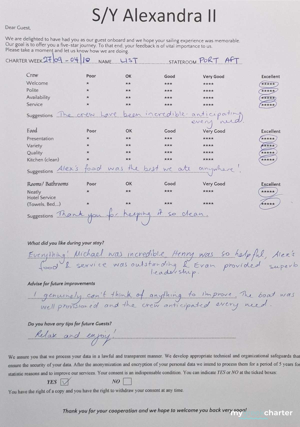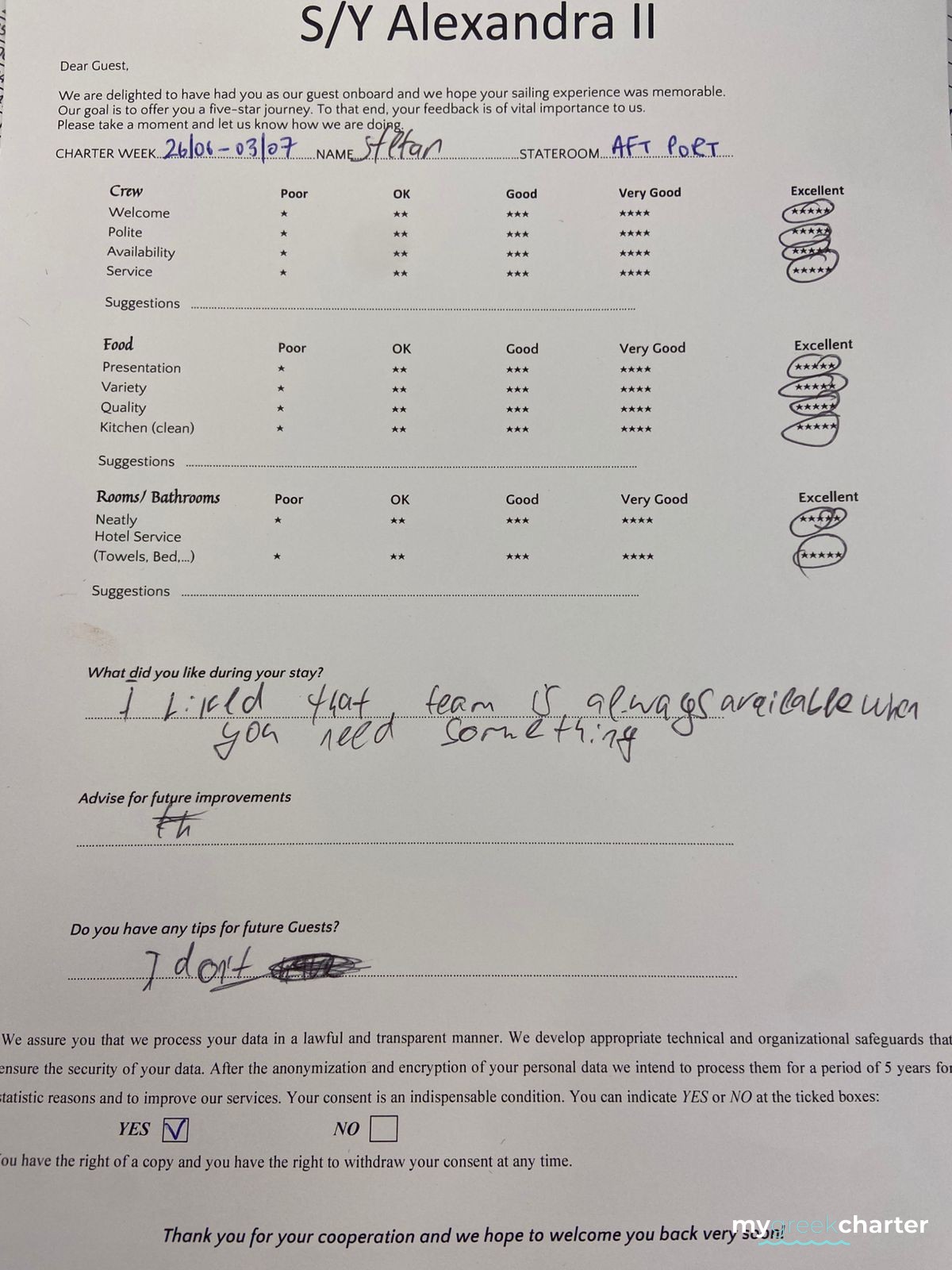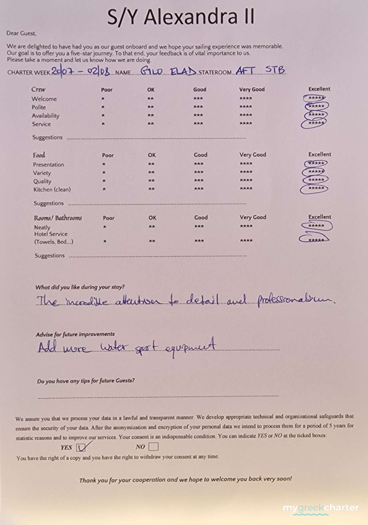 Known for his kindness, discretion, and keen attentiveness to guests' needs, Michael seamlessly transitioned to his steward role. His dedication to providing excellent service is evident in his approach, making every effort to ensure the comfort and satisfaction of those on board. Fluent in both English (his native language) and Greek, Michael communicates effortlessly with guests, enhancing their overall experience and contributing to the welcoming atmosphere aboard Alexandra II. With a genuine commitment to hospitality, Michael is a valuable member of the crew dedicated to making every guest's journey enjoyable and memorable.