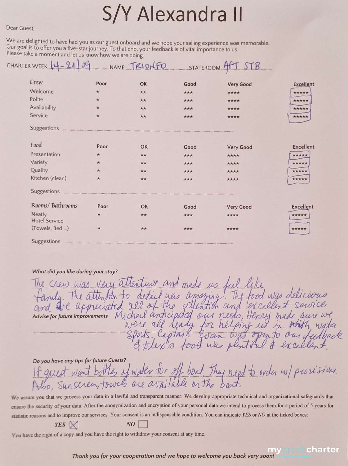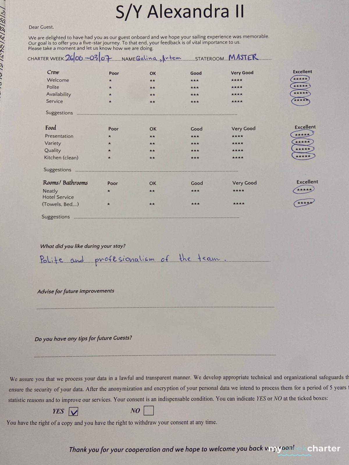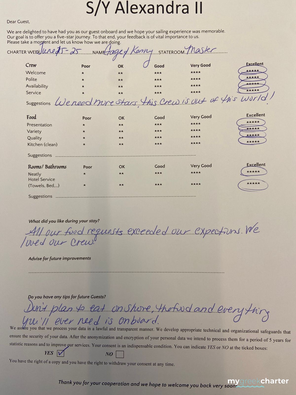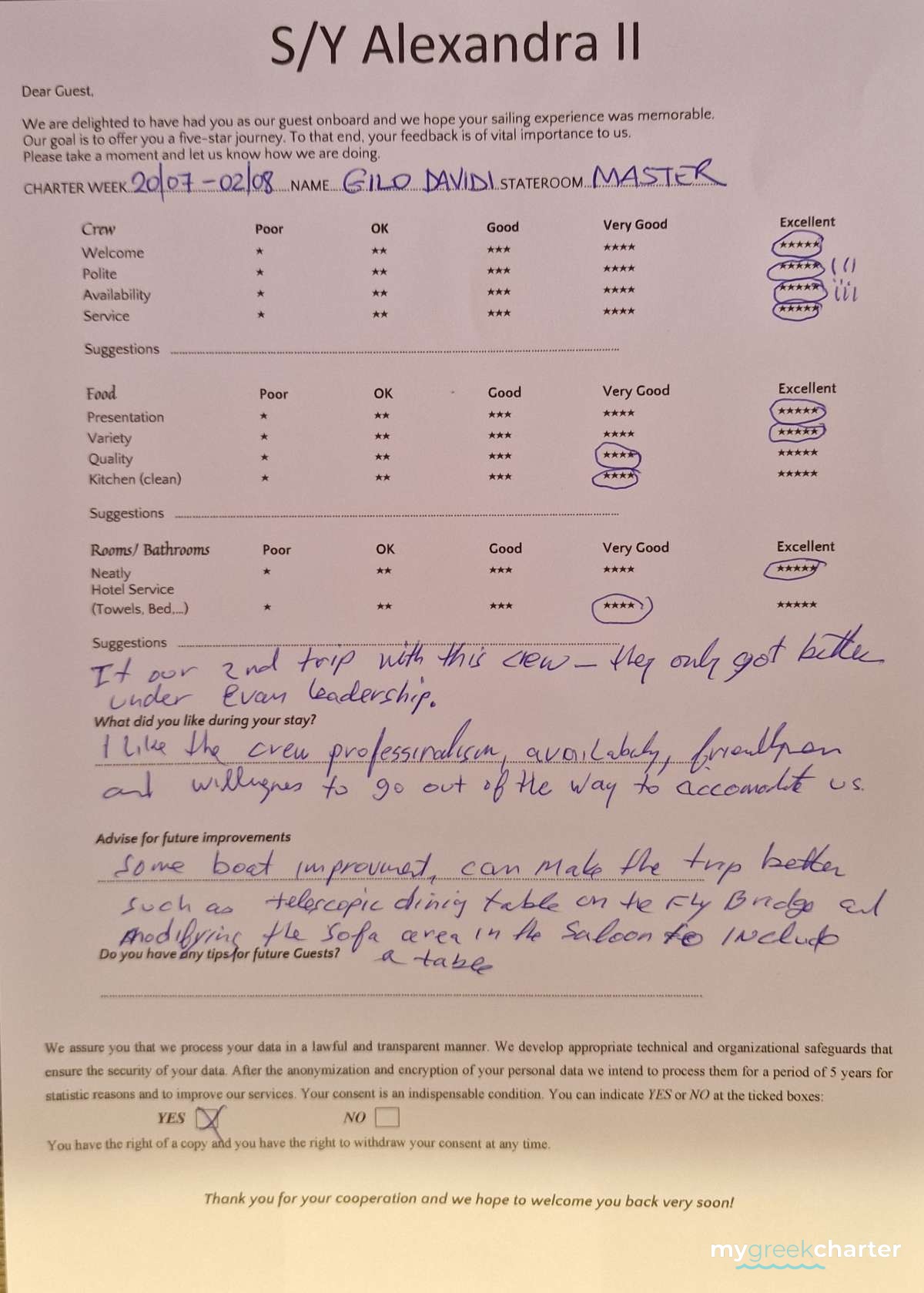 Known for his kindness, discretion, and keen attentiveness to guests' needs, Michael seamlessly transitioned to his steward role. His dedication to providing excellent service is evident in his approach, making every effort to ensure the comfort and satisfaction of those on board. Fluent in both English (his native language) and Greek, Michael communicates effortlessly with guests, enhancing their overall experience and contributing to the welcoming atmosphere aboard Alexandra II. With a genuine commitment to hospitality, Michael is a valuable member of the crew dedicated to making every guest's journey enjoyable and memorable.