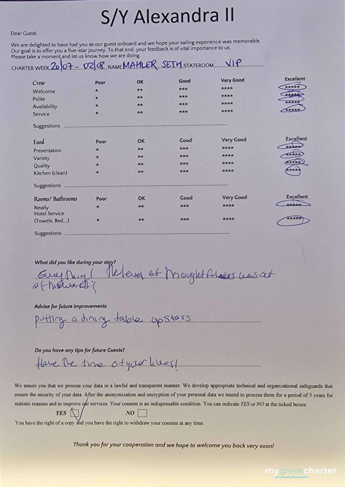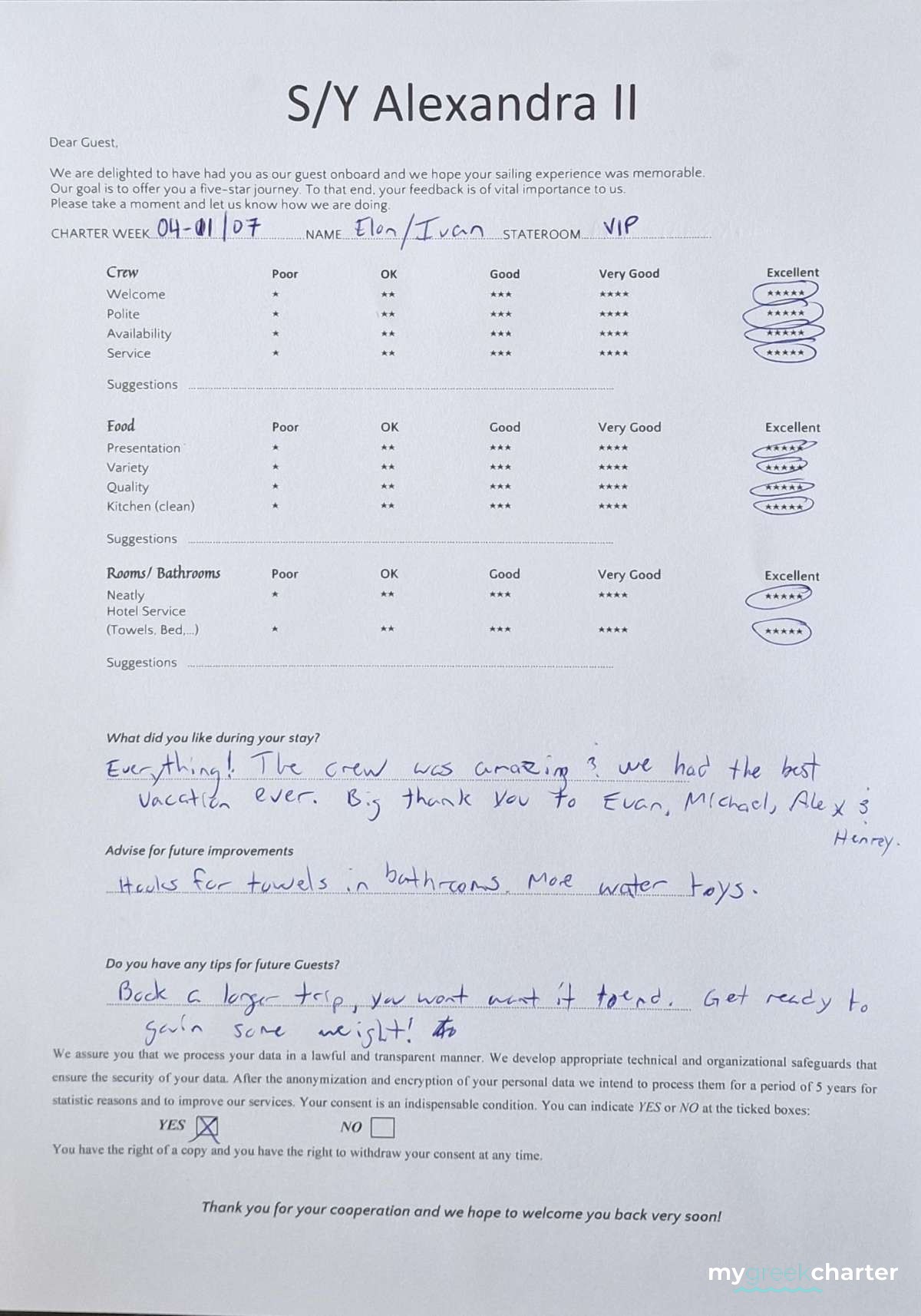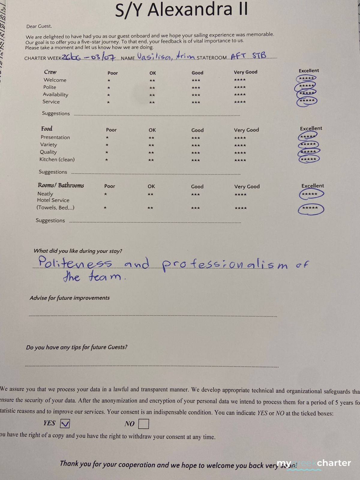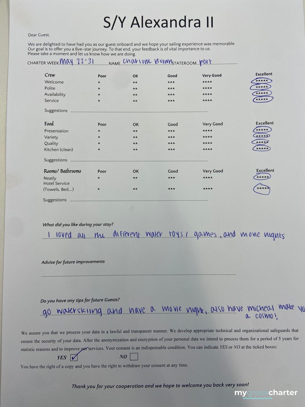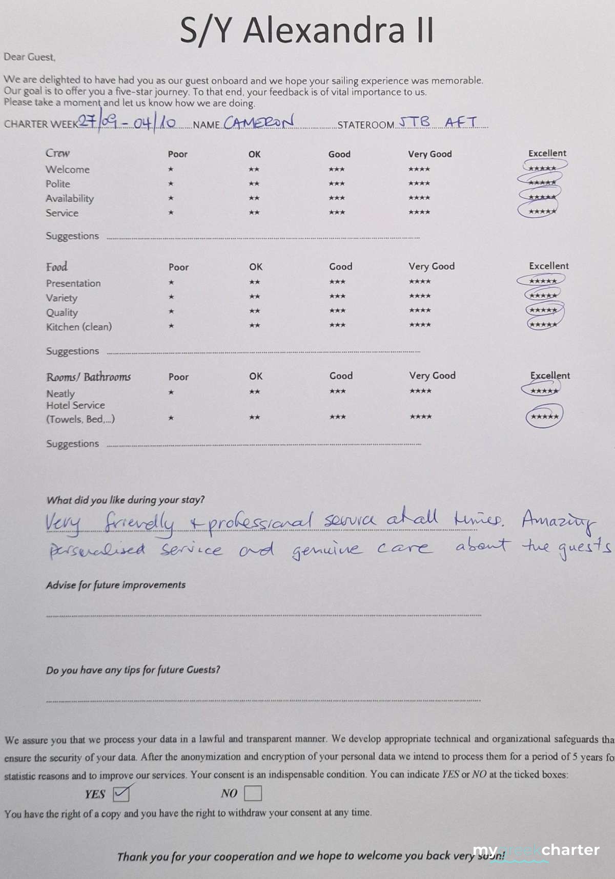 Known for his kindness, discretion, and keen attentiveness to guests' needs, Michael seamlessly transitioned to his steward role. His dedication to providing excellent service is evident in his approach, making every effort to ensure the comfort and satisfaction of those on board. Fluent in both English (his native language) and Greek, Michael communicates effortlessly with guests, enhancing their overall experience and contributing to the welcoming atmosphere aboard Alexandra II. With a genuine commitment to hospitality, Michael is a valuable member of the crew dedicated to making every guest's journey enjoyable and memorable.