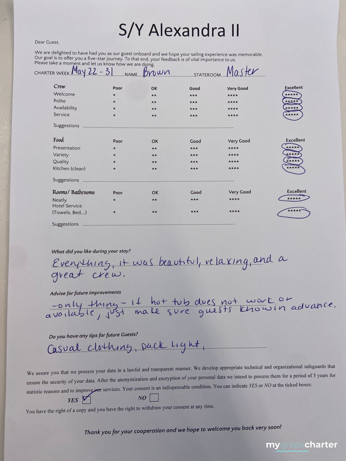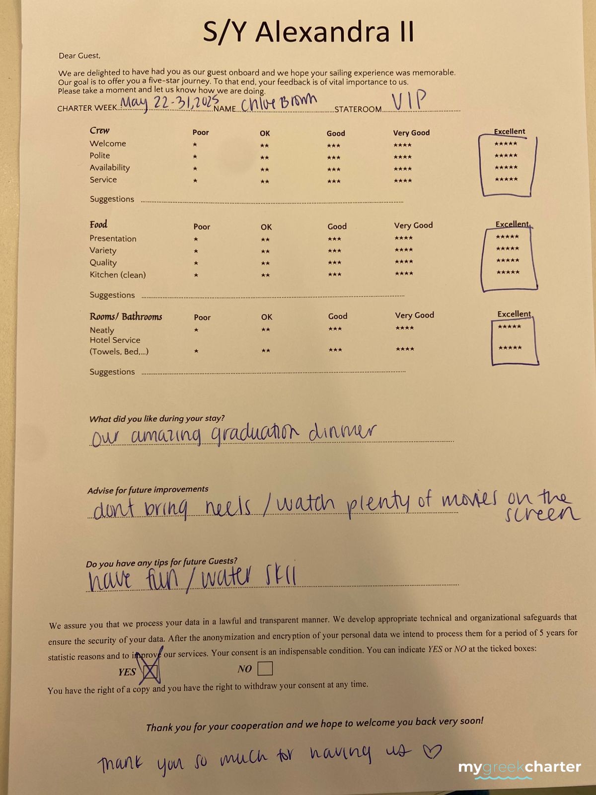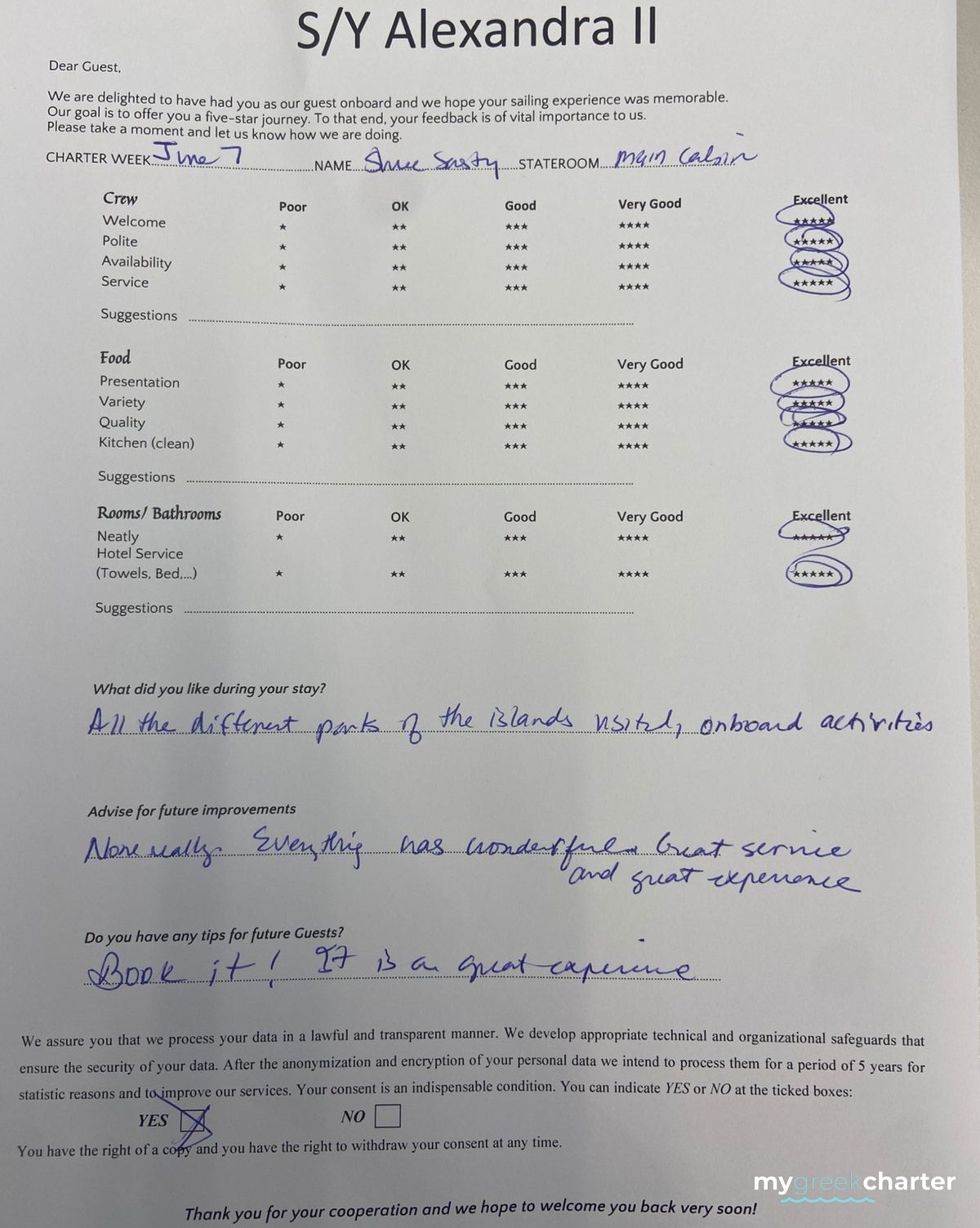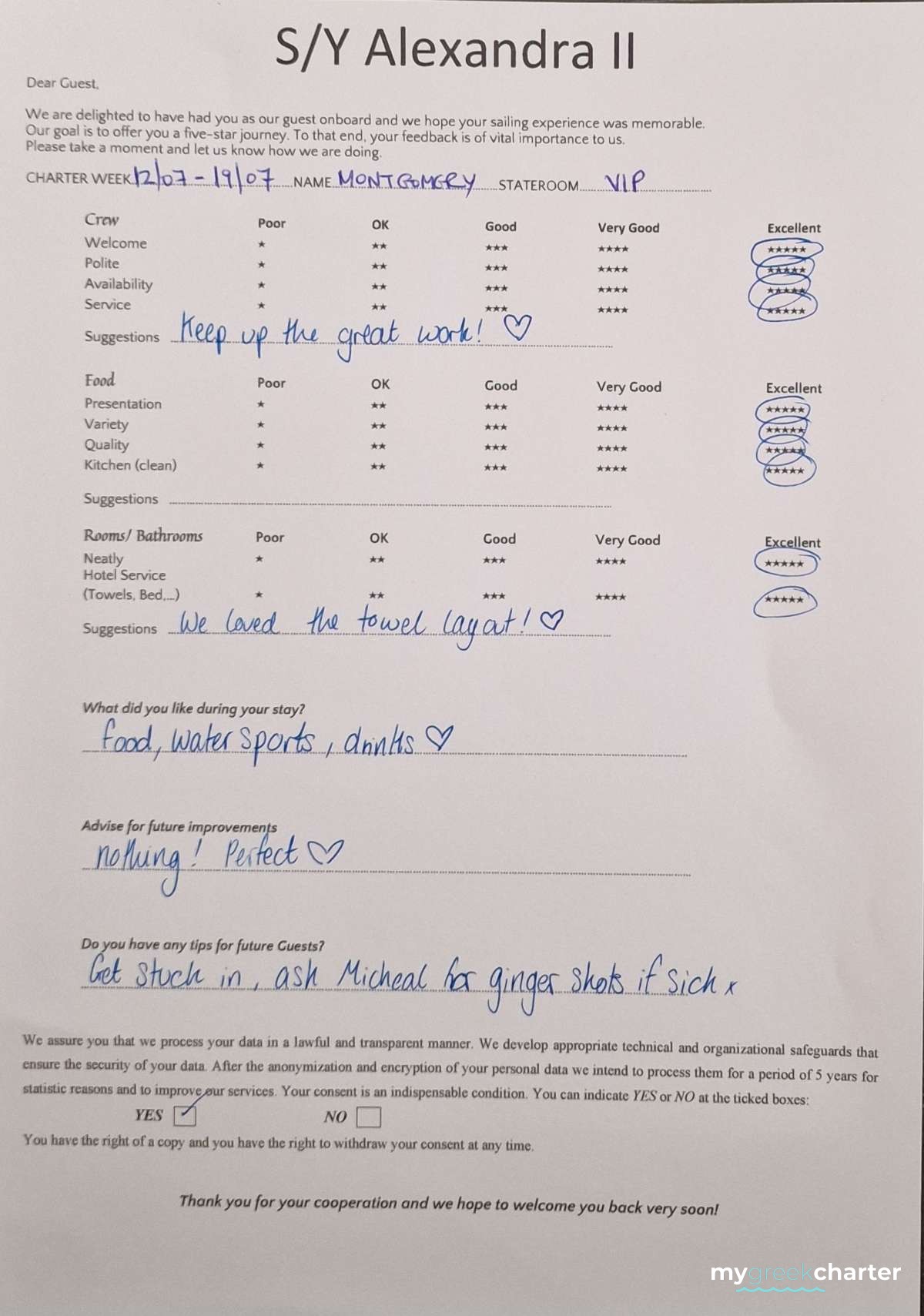 Known for his kindness, discretion, and keen attentiveness to guests' needs, Michael seamlessly transitioned to his steward role. His dedication to providing excellent service is evident in his approach, making every effort to ensure the comfort and satisfaction of those on board. Fluent in both English (his native language) and Greek, Michael communicates effortlessly with guests, enhancing their overall experience and contributing to the welcoming atmosphere aboard Alexandra II. With a genuine commitment to hospitality, Michael is a valuable member of the crew dedicated to making every guest's journey enjoyable and memorable.