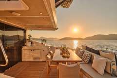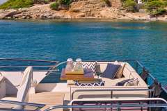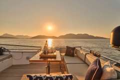 ALKYONE is classified as a superyacht. The generous aft deck, elegantly connects to the well-equipped and inviting main saloon. The main saloon is a well-design space to spend time when the aft deck might not be as desirable (at port, private conversations) and boasts a number of entertainment options. 4 tasteful cabins are thoughtfully spread out for maximum privacy and comfort.