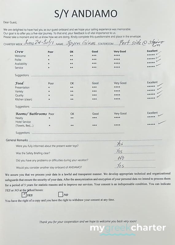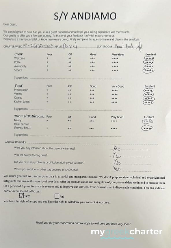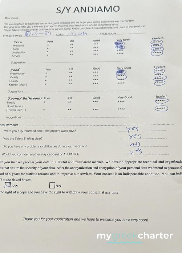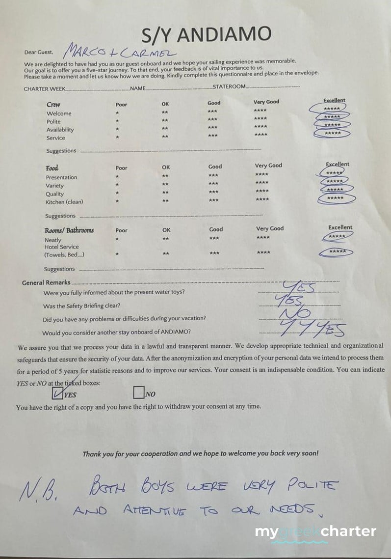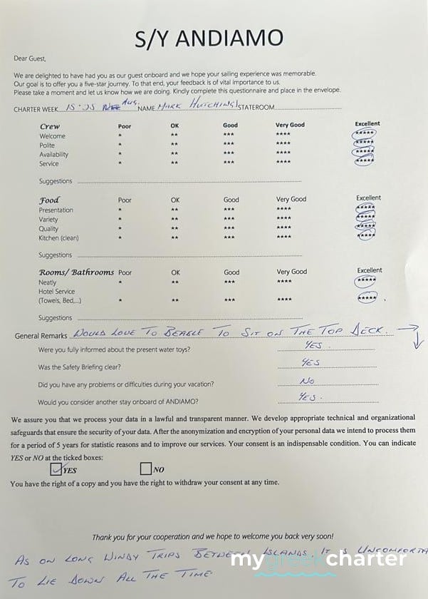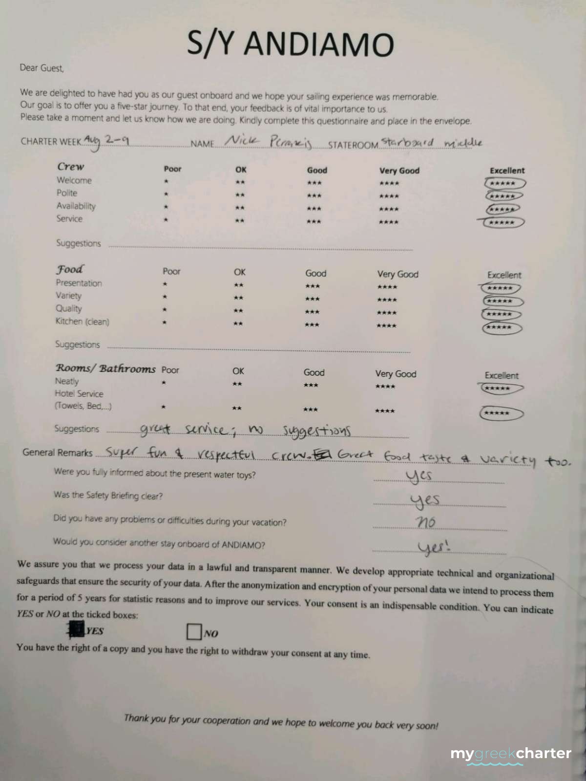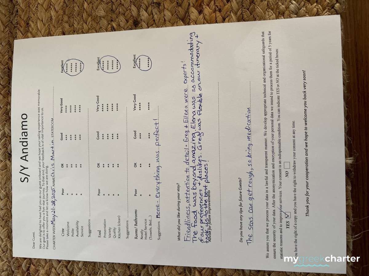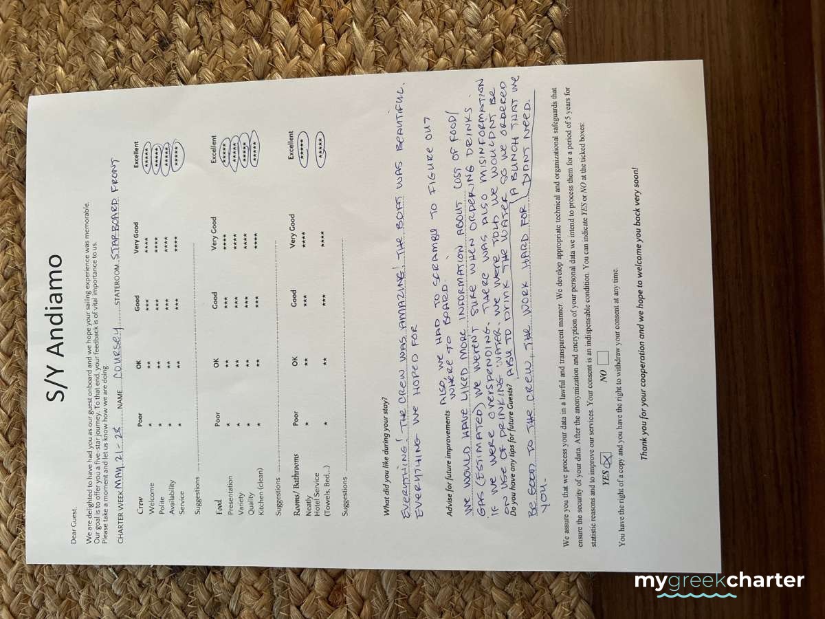 Grigoris is a very responsible and considerate sailor, always ensuring his guests’ privacy, yet being always attentive.