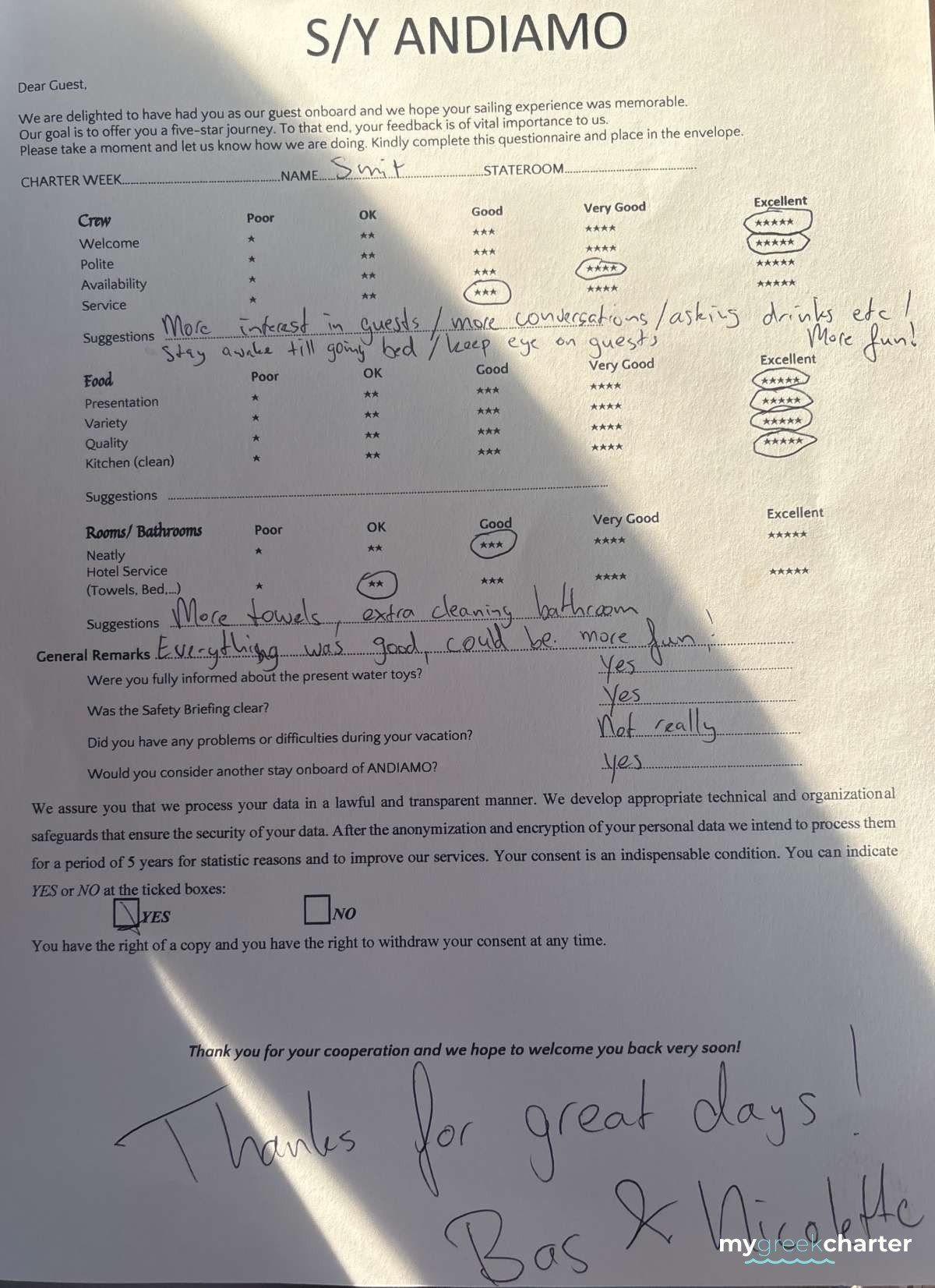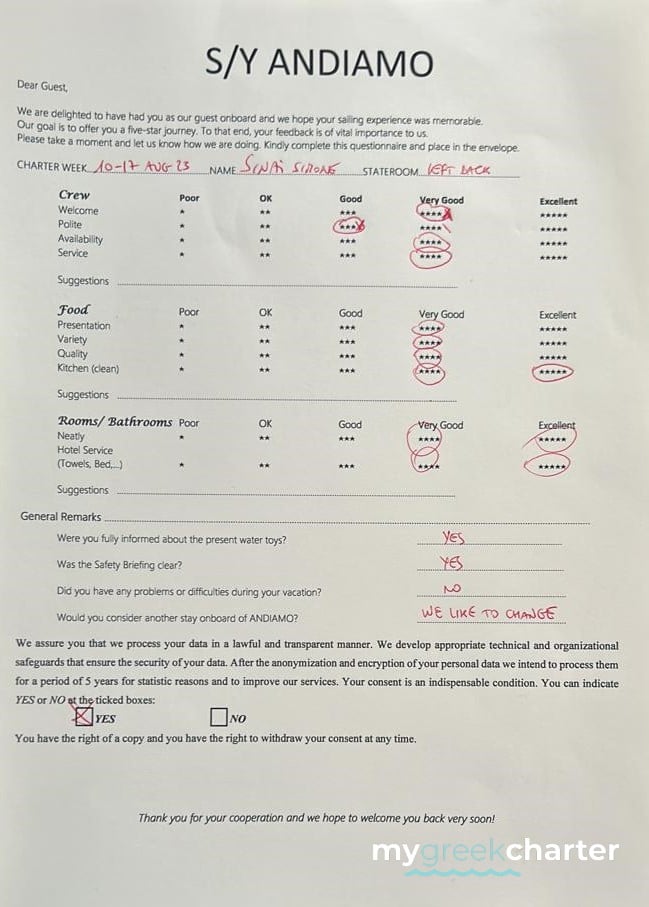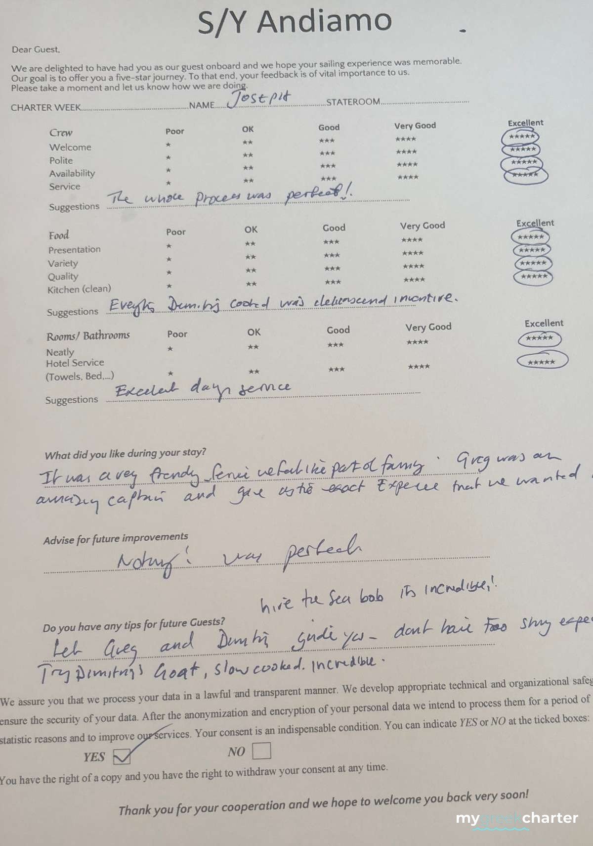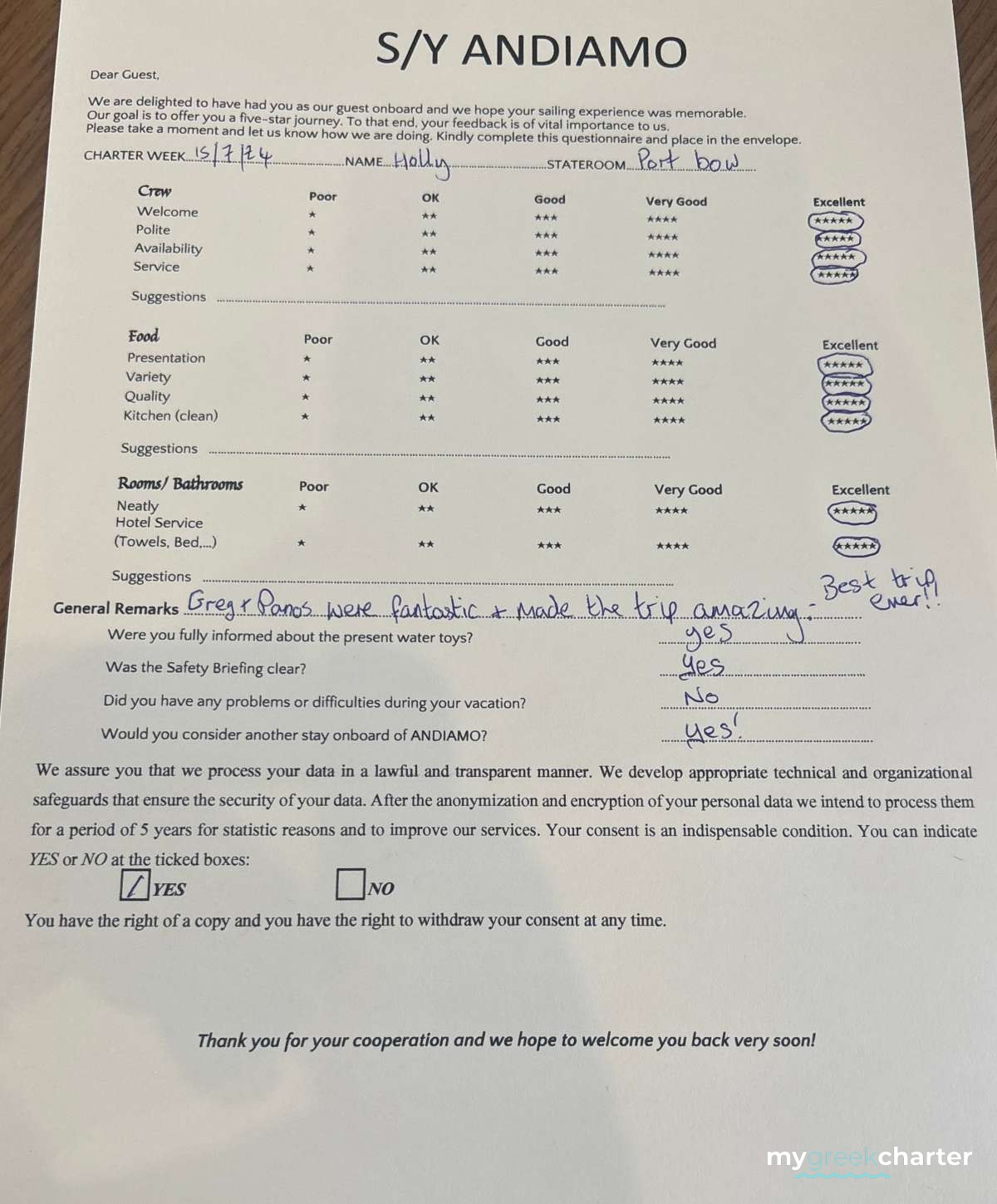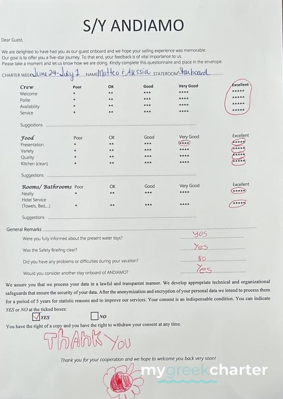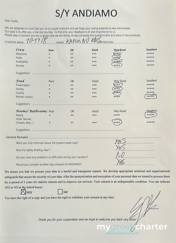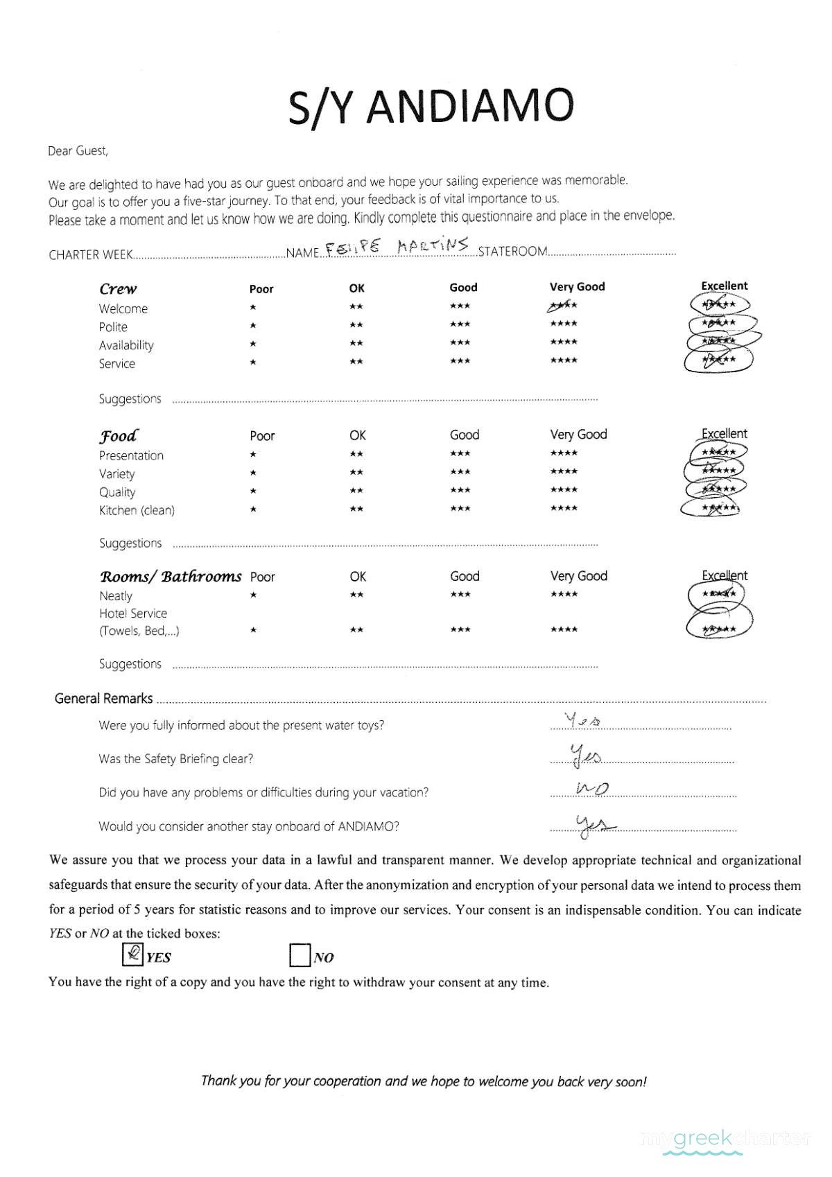 Grigoris is a very responsible and considerate sailor, always ensuring his guests’ privacy, yet being always attentive.