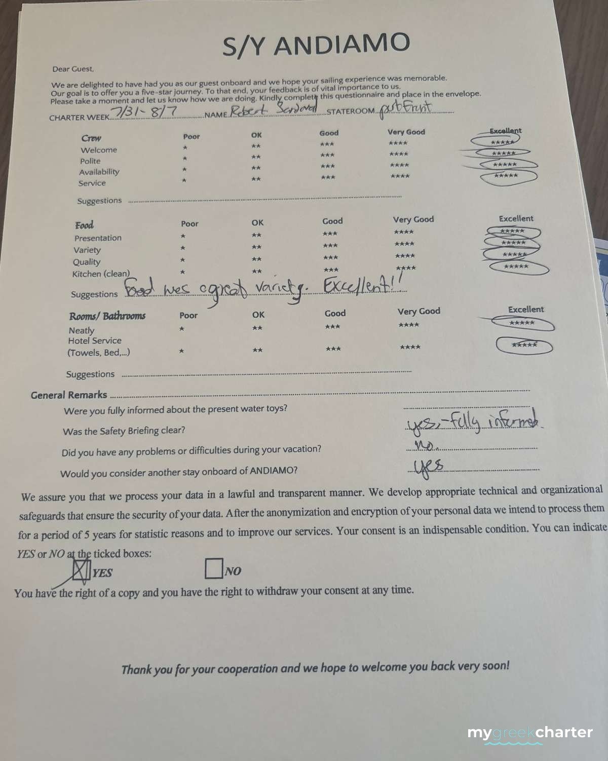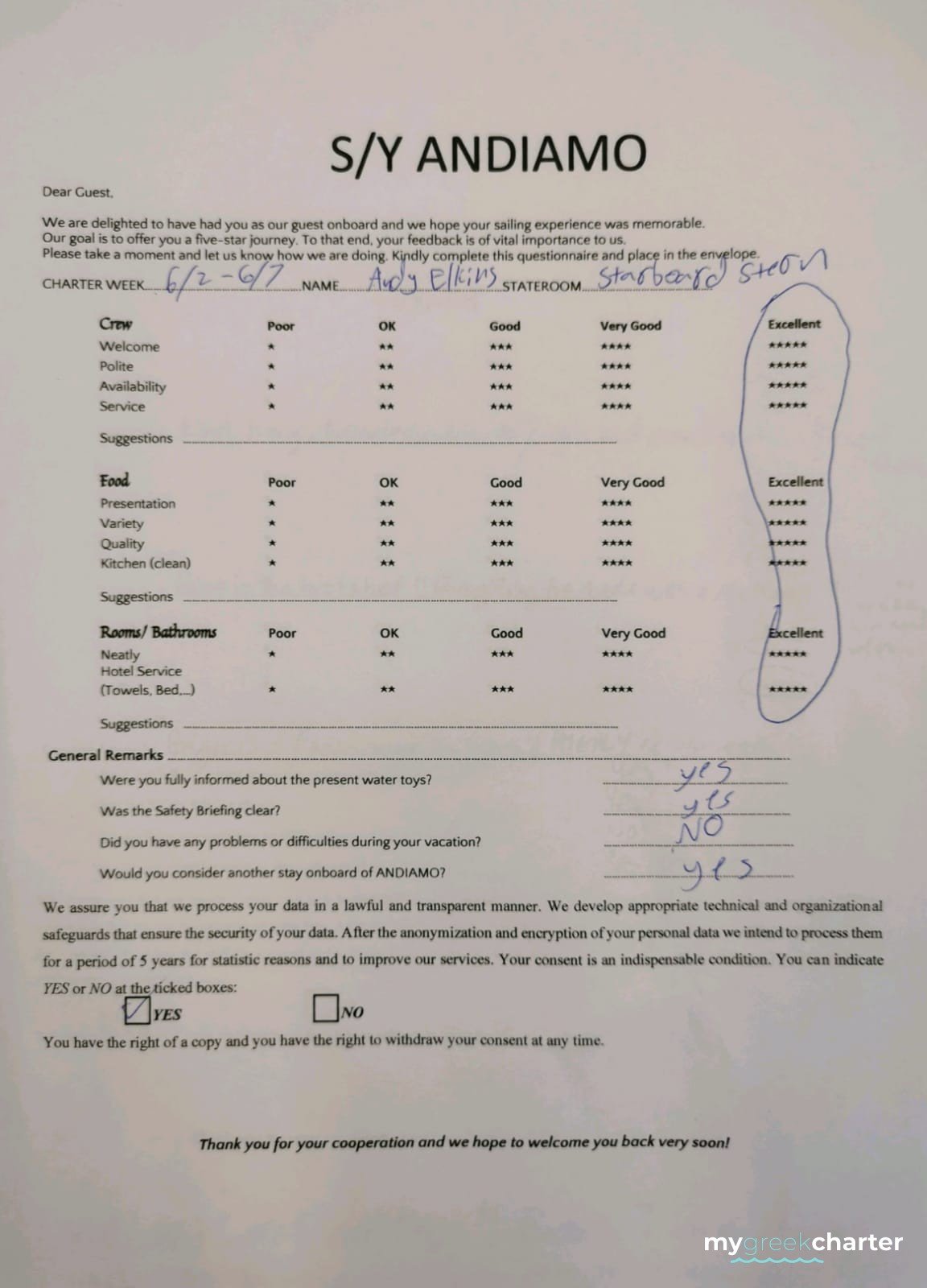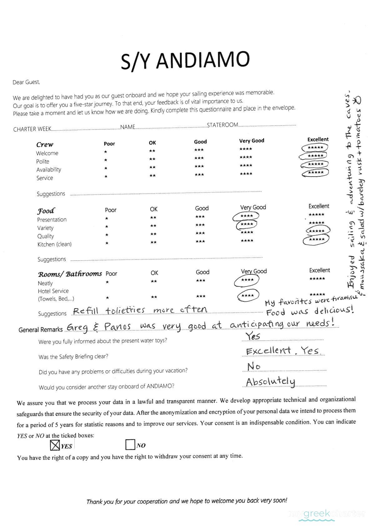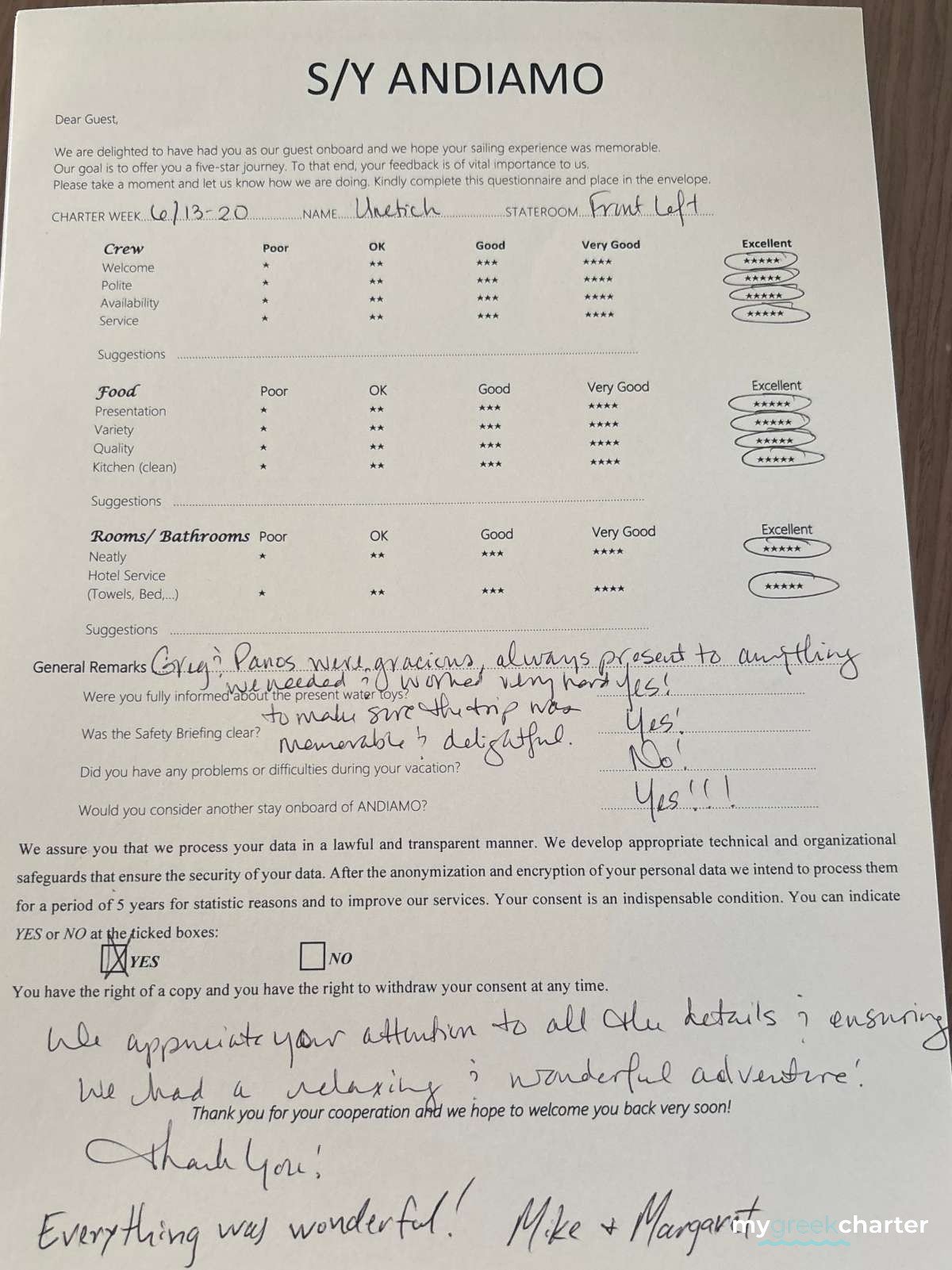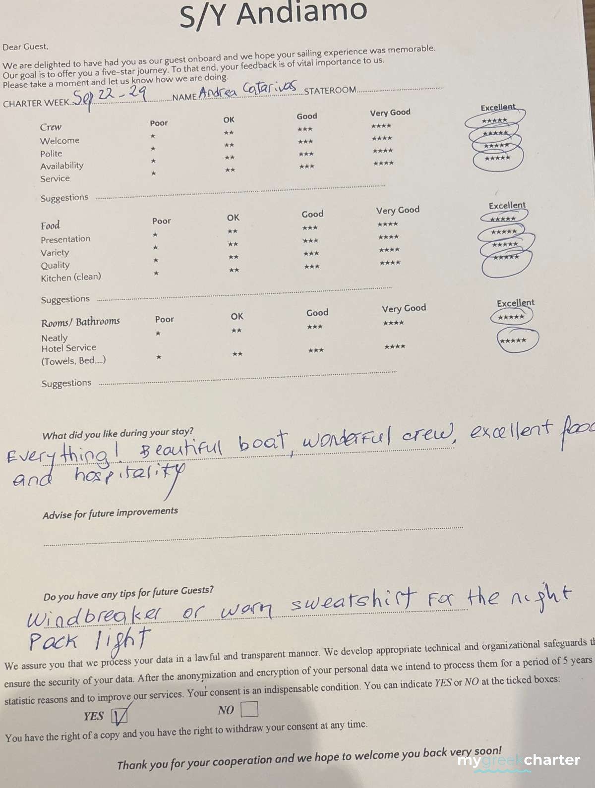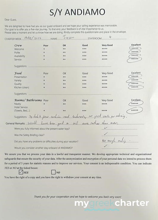 Grigoris is a very responsible and considerate sailor, always ensuring his guests’ privacy, yet being always attentive.
