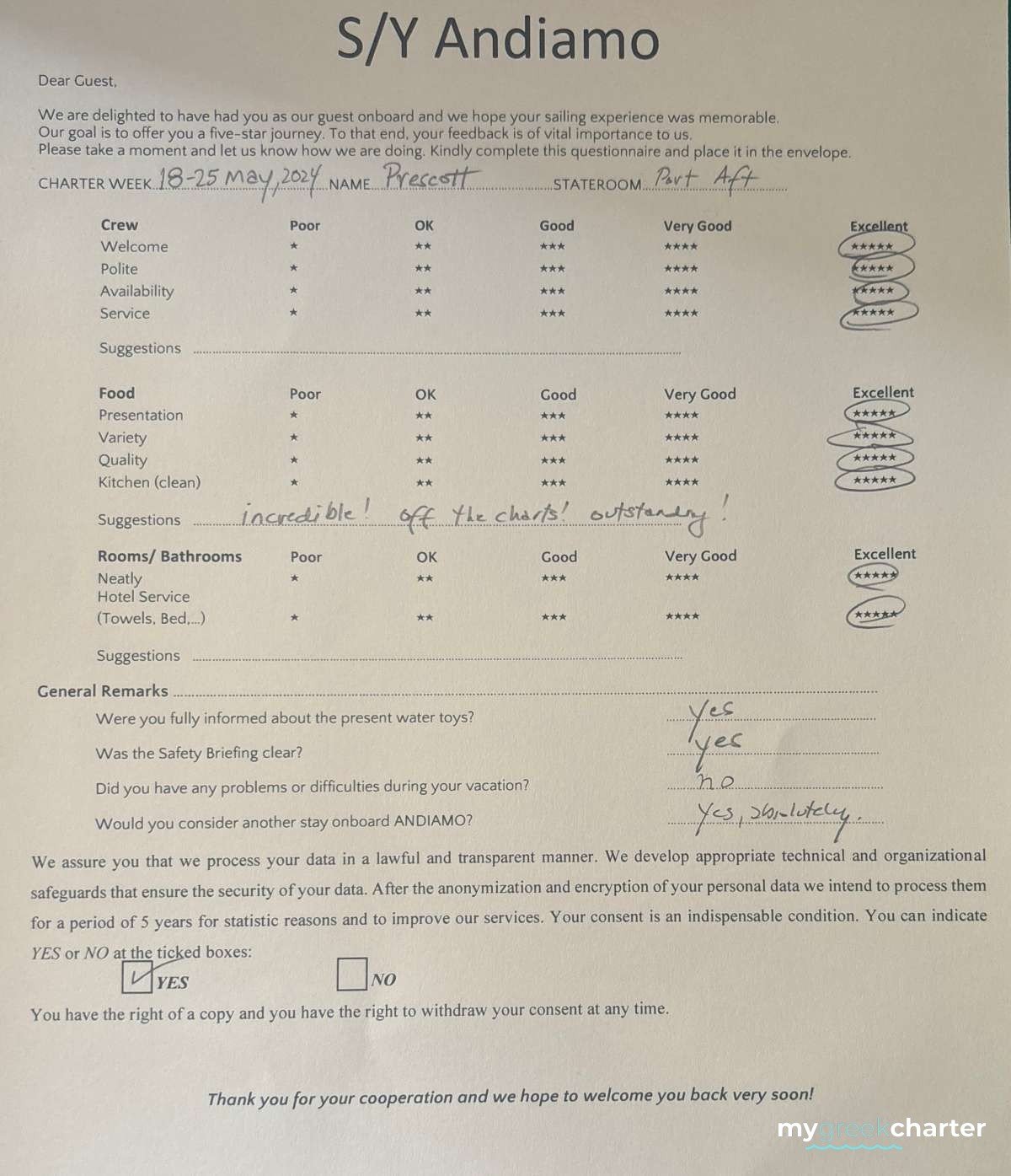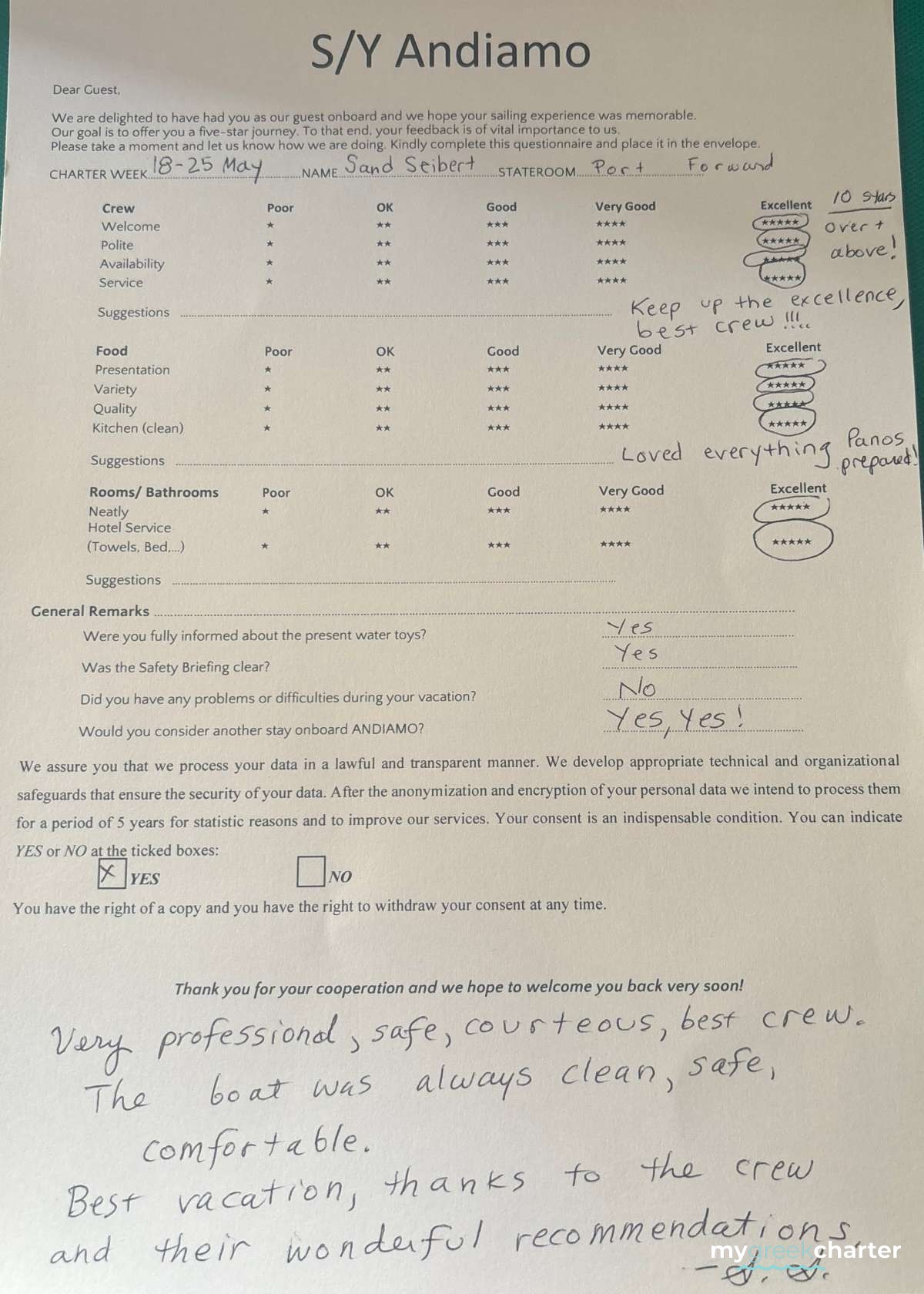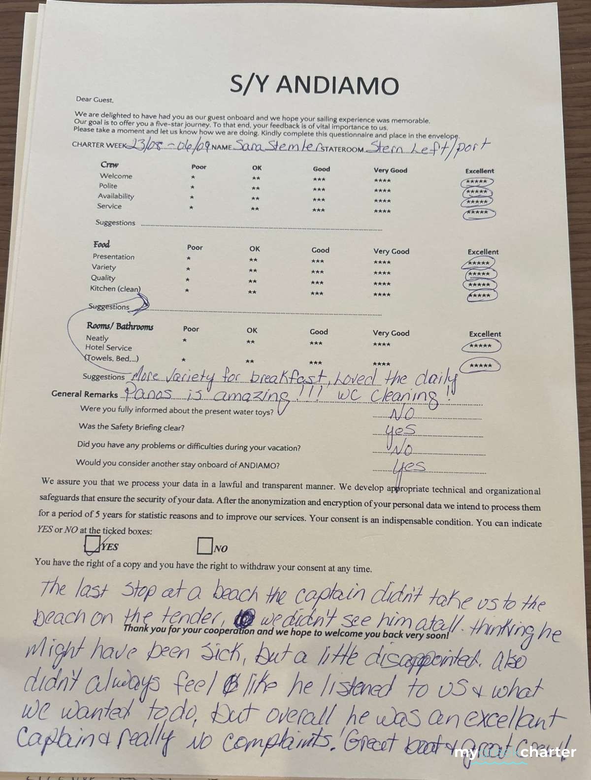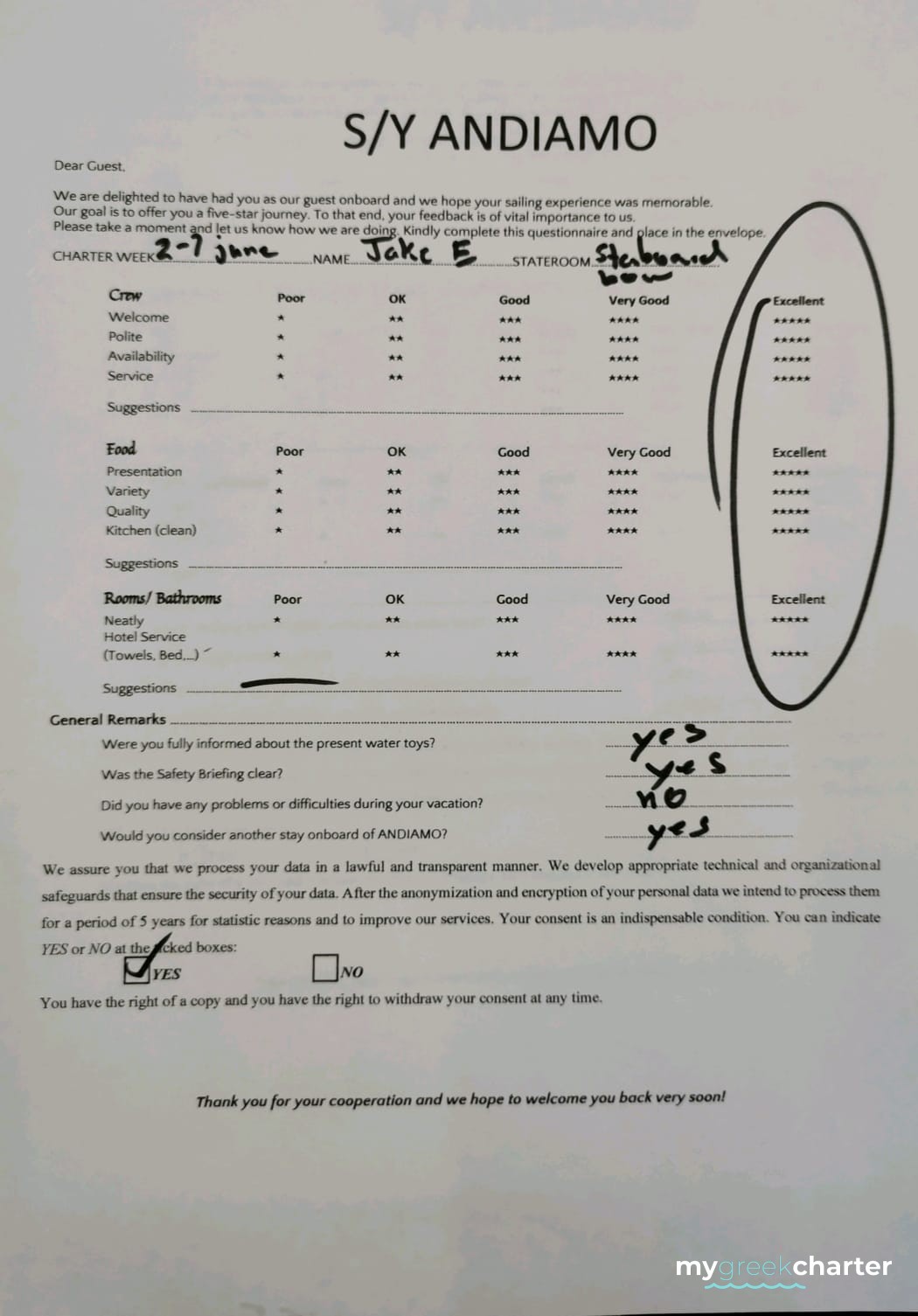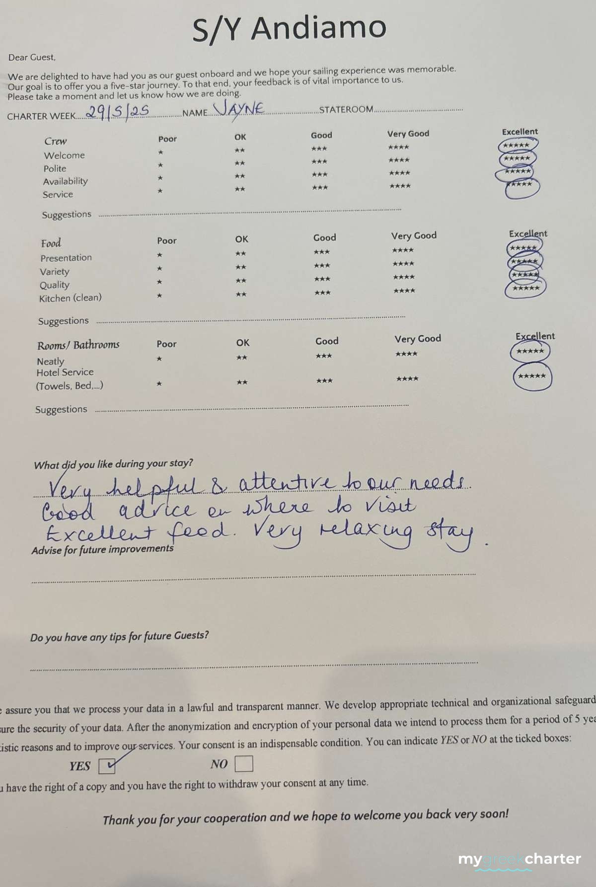Grigoris is a very responsible and considerate sailor, always ensuring his guests’ privacy, yet being always attentive.