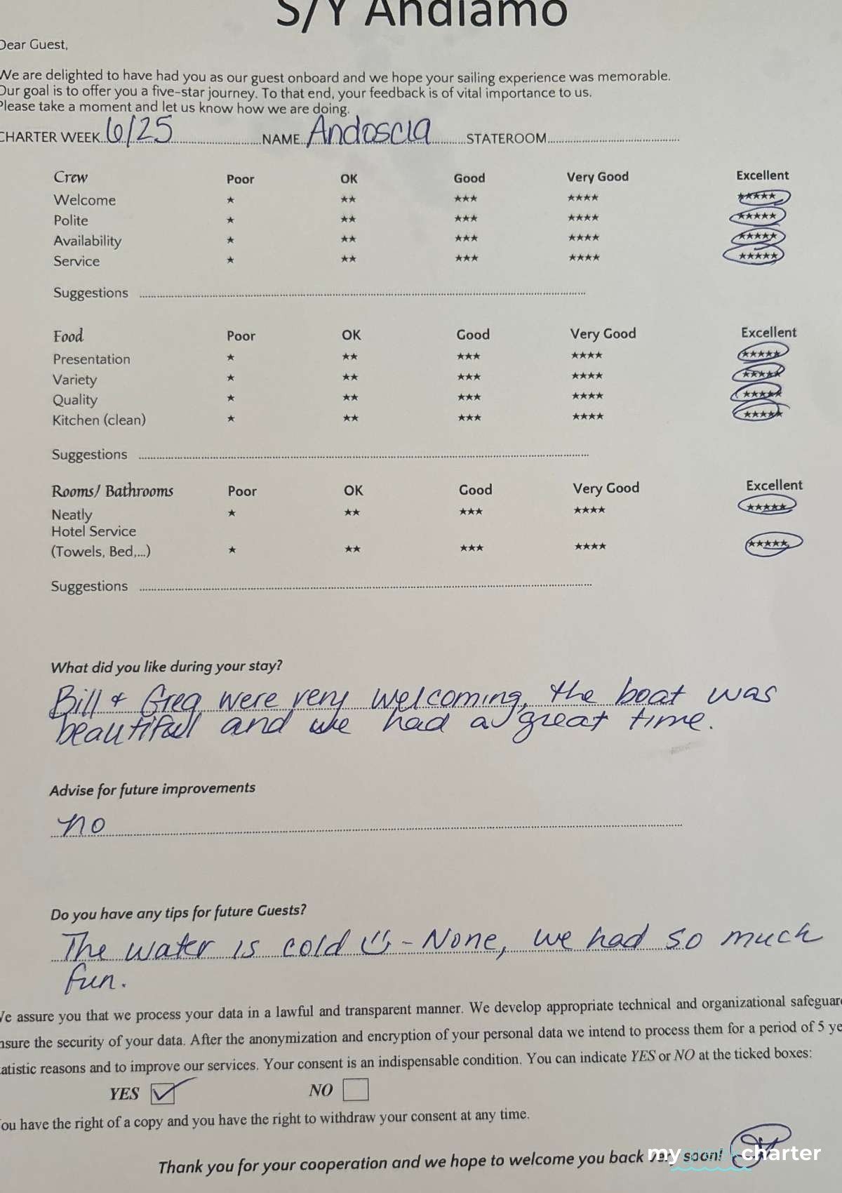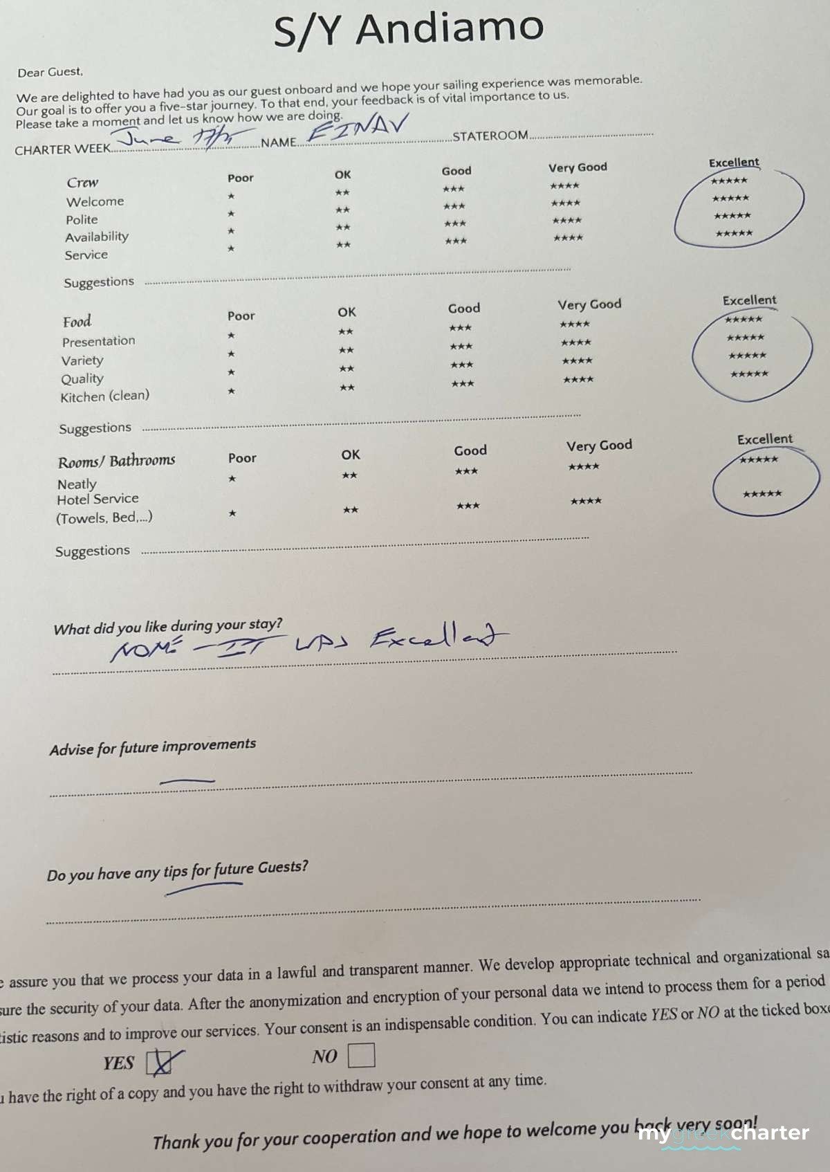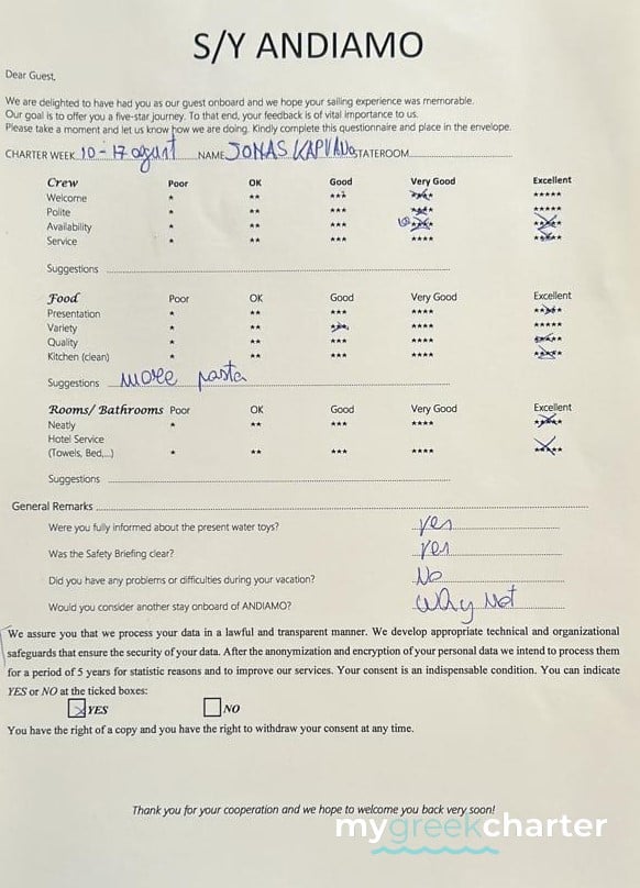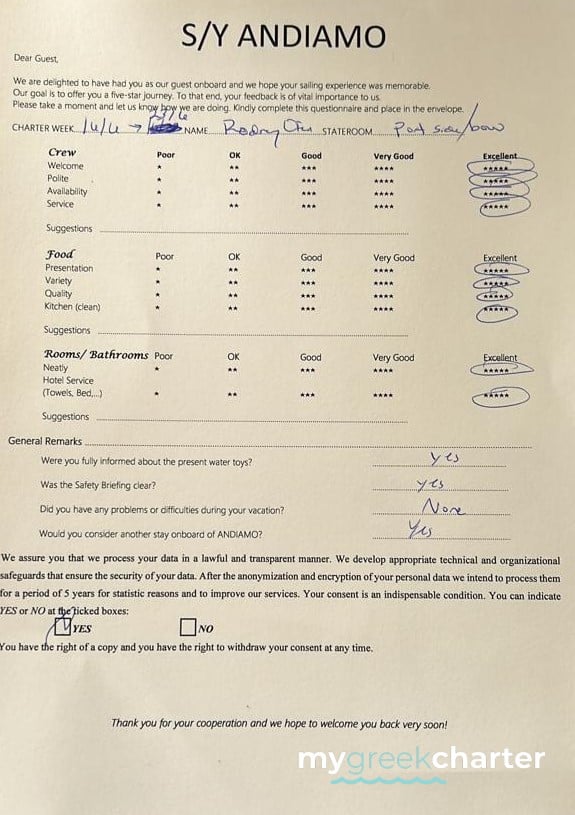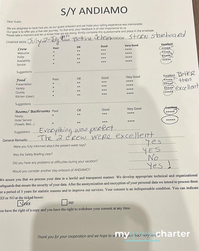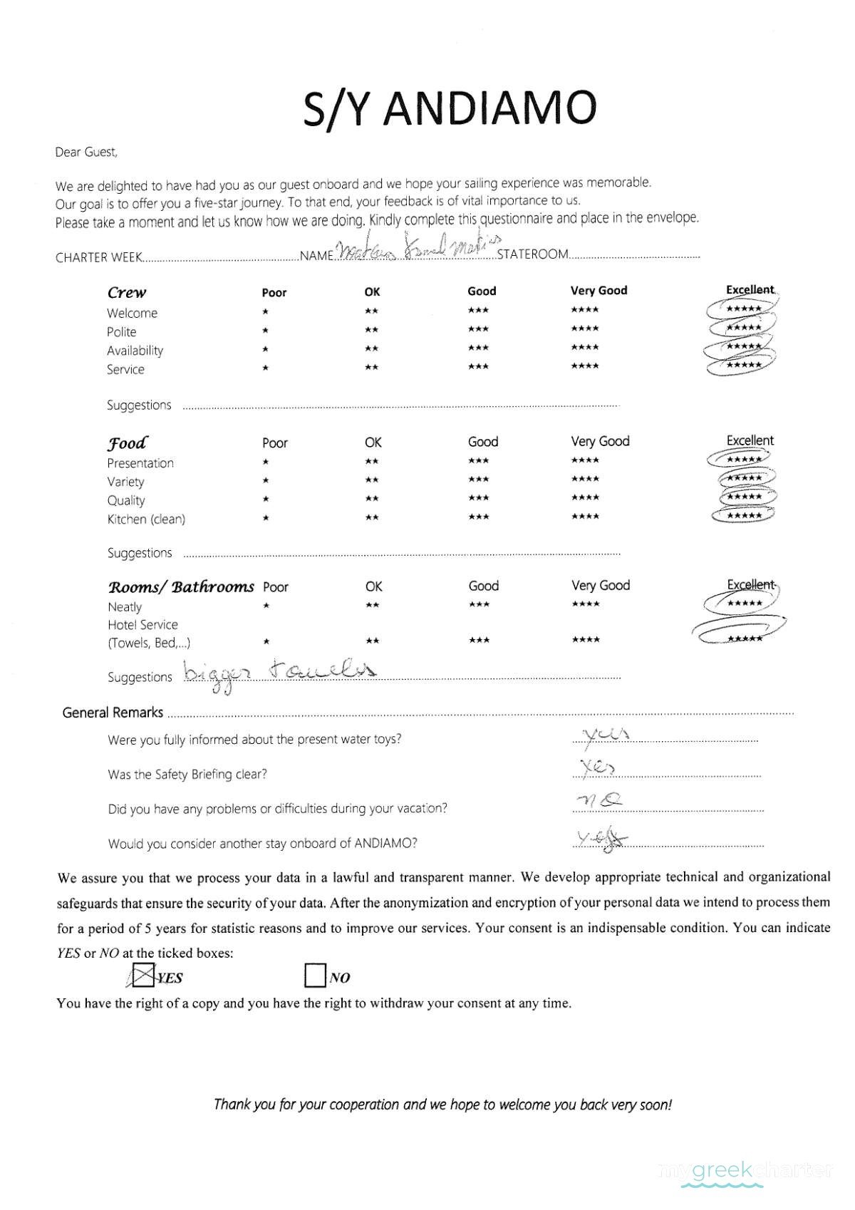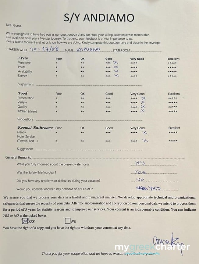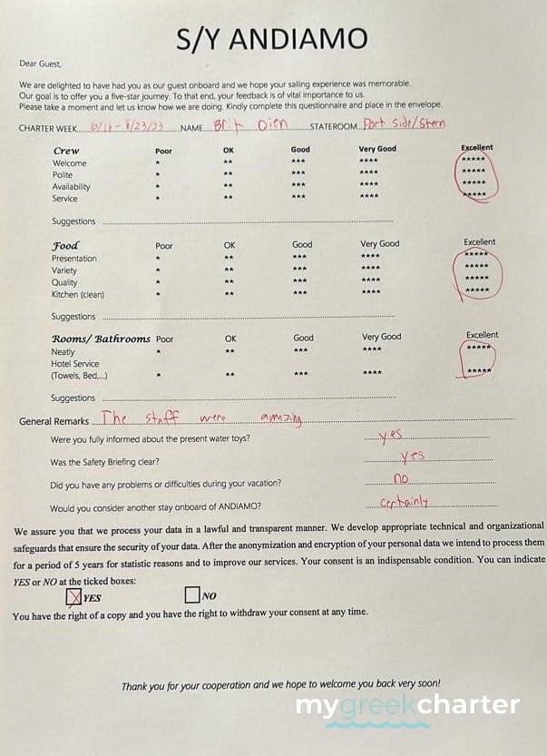 Grigoris is a very responsible and considerate sailor, always ensuring his guests’ privacy, yet being always attentive.