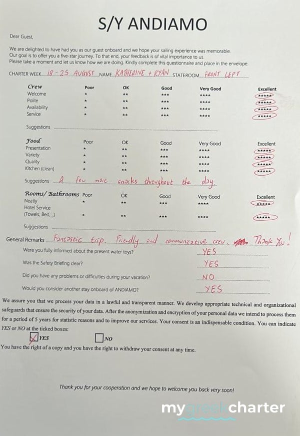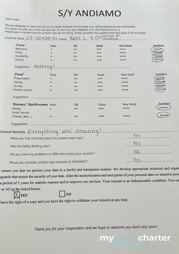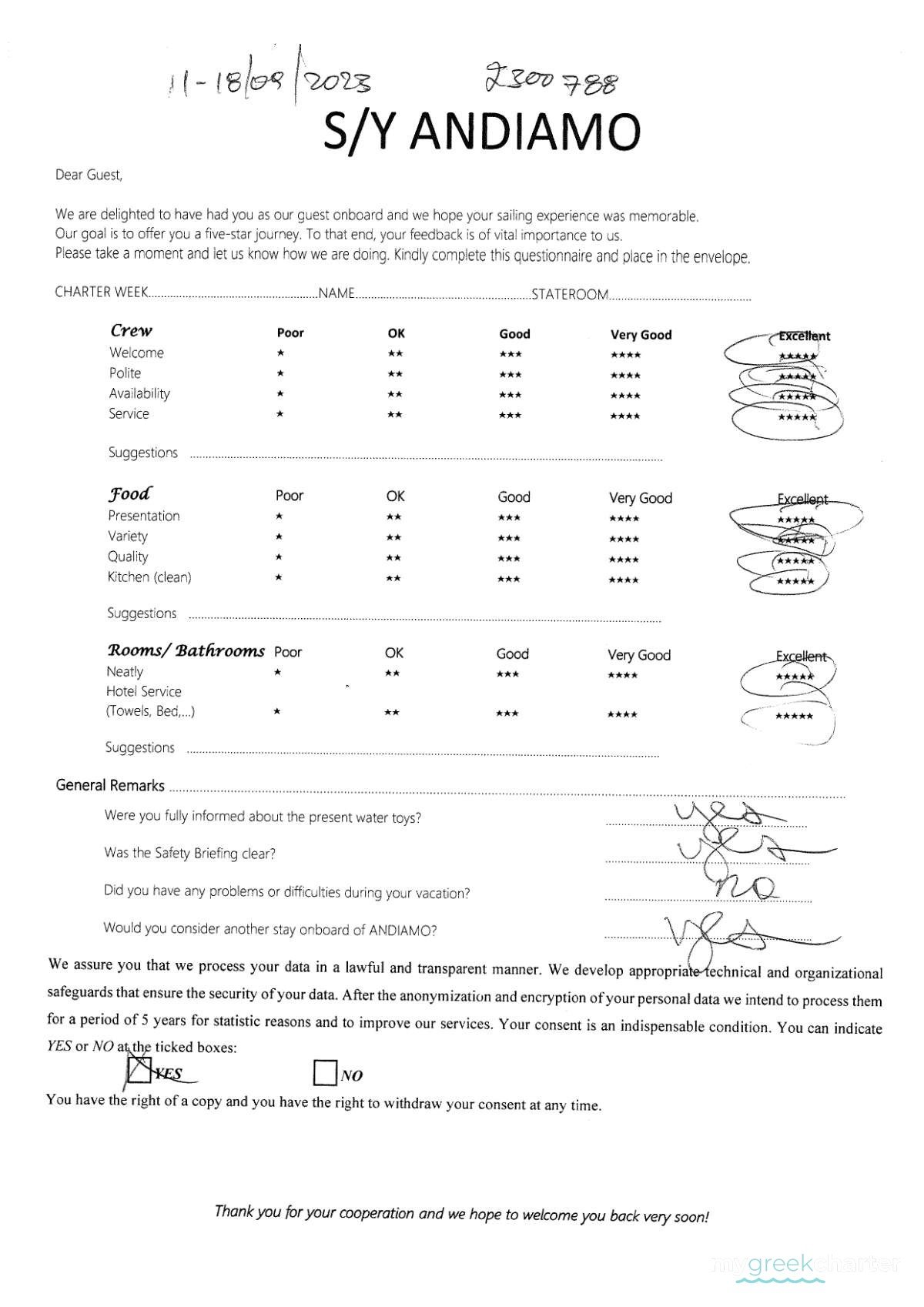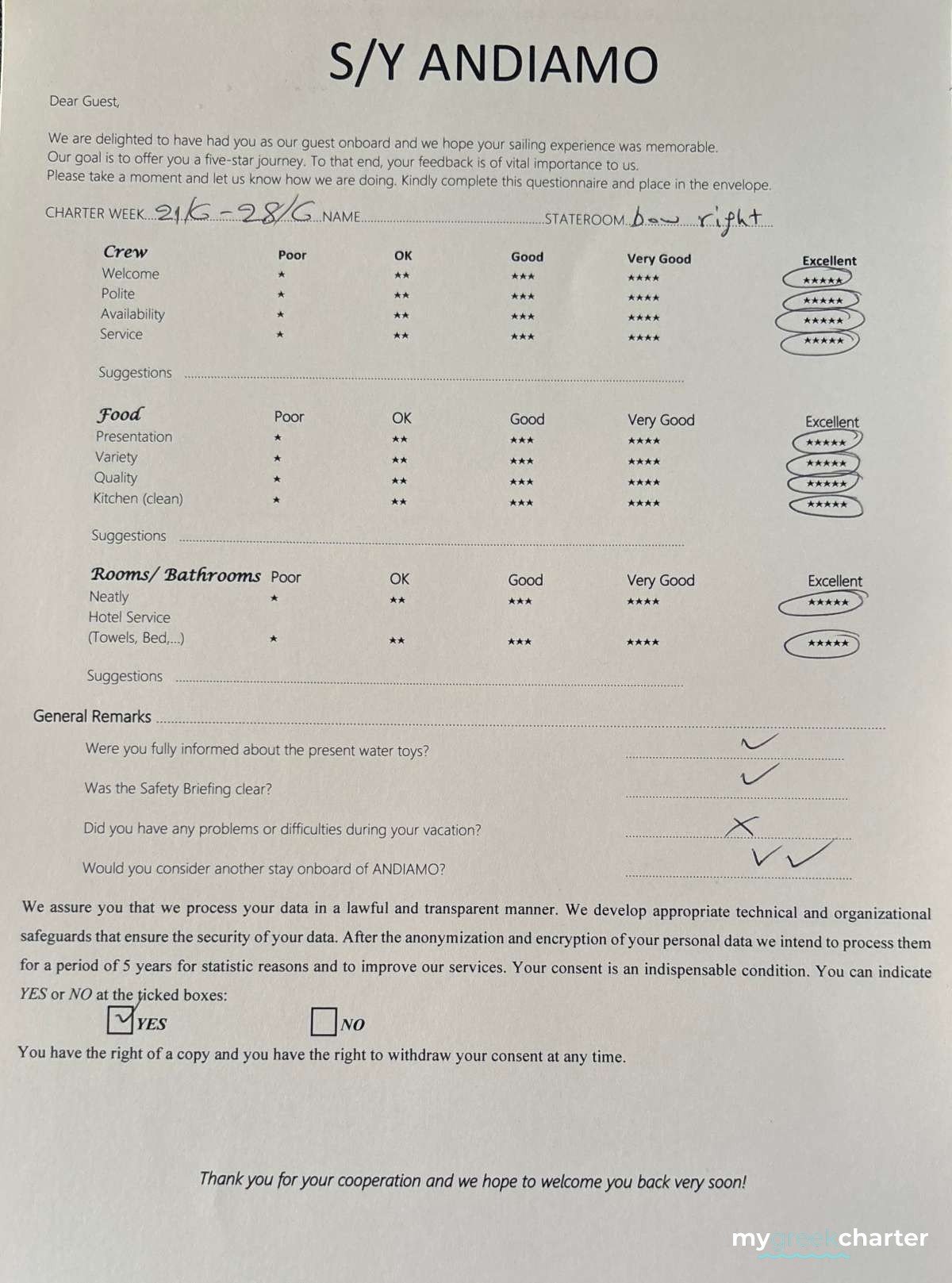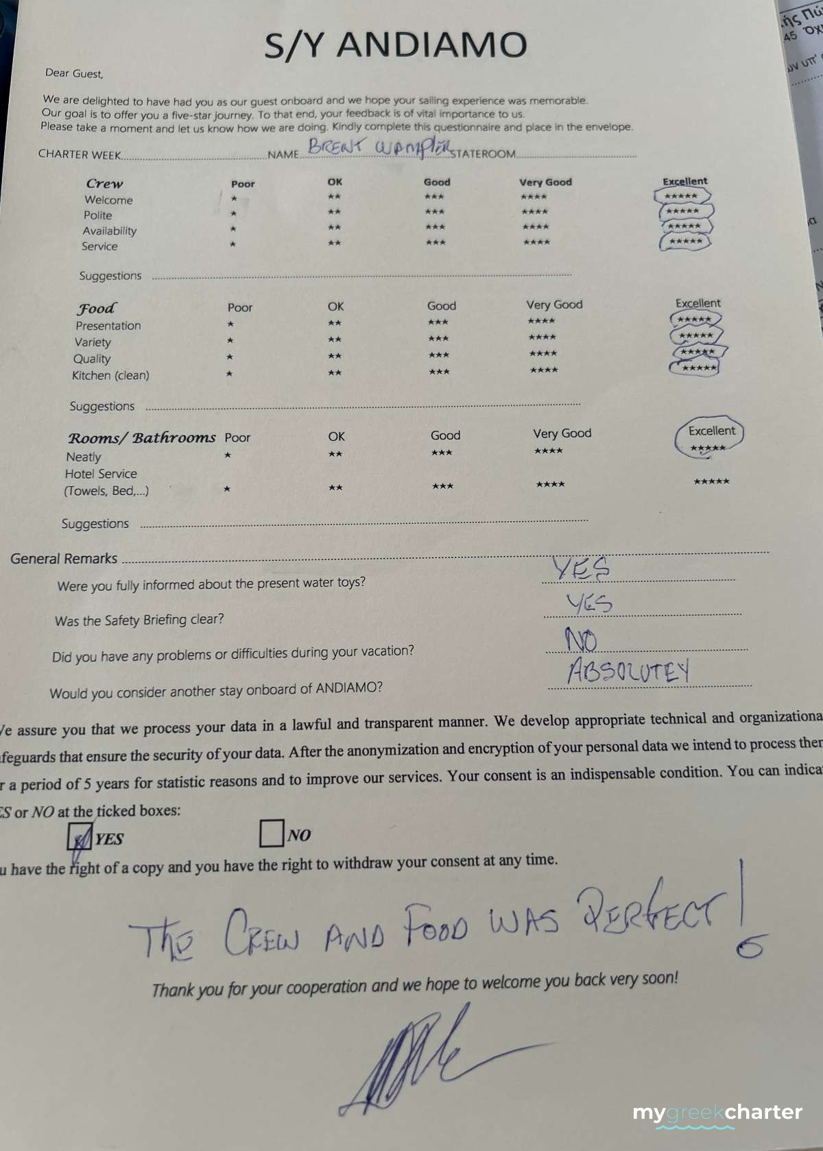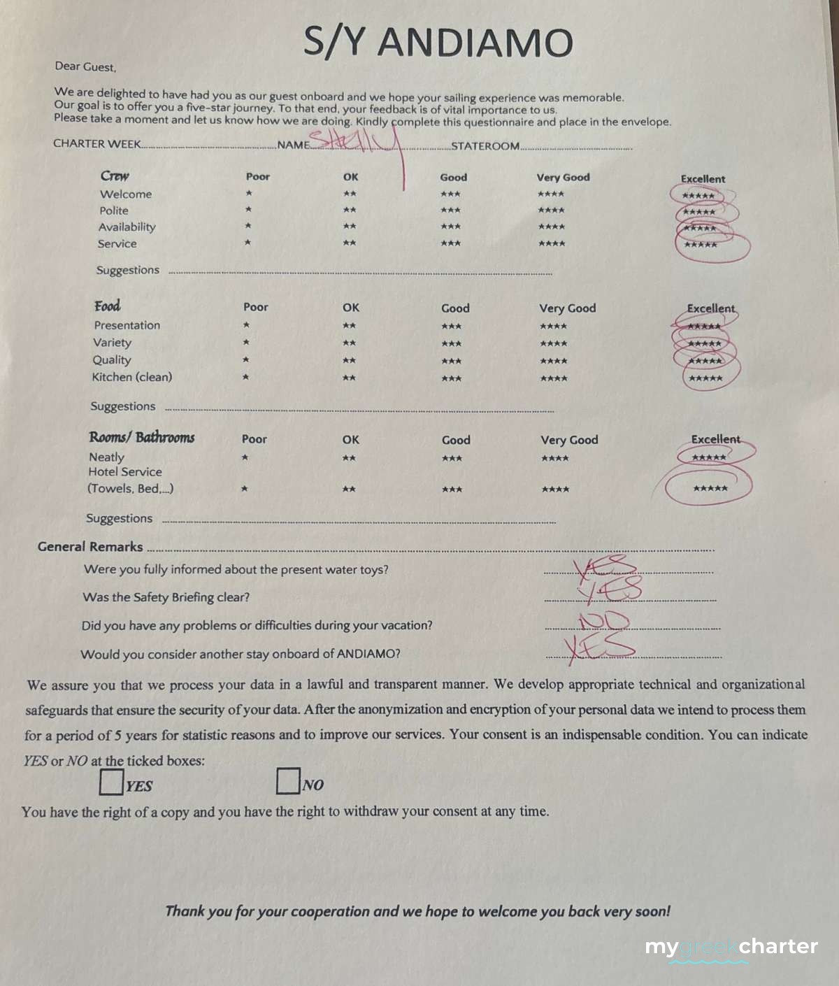 Grigoris is a very responsible and considerate sailor, always ensuring his guests’ privacy, yet being always attentive.