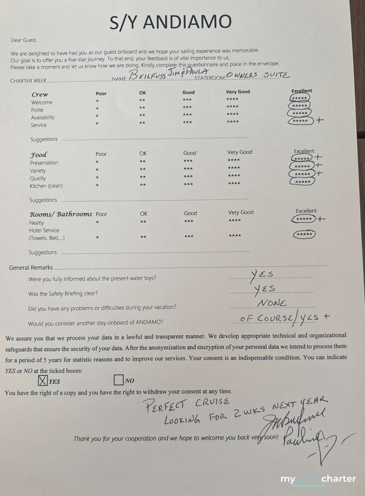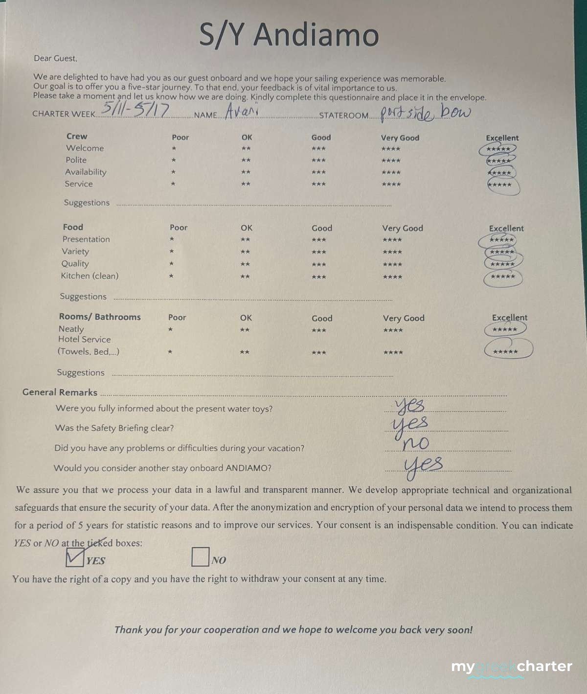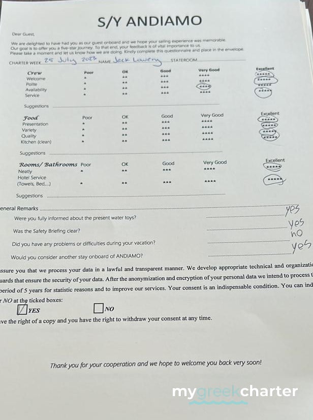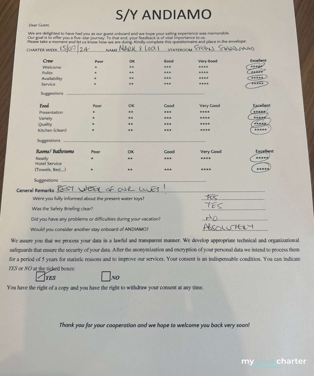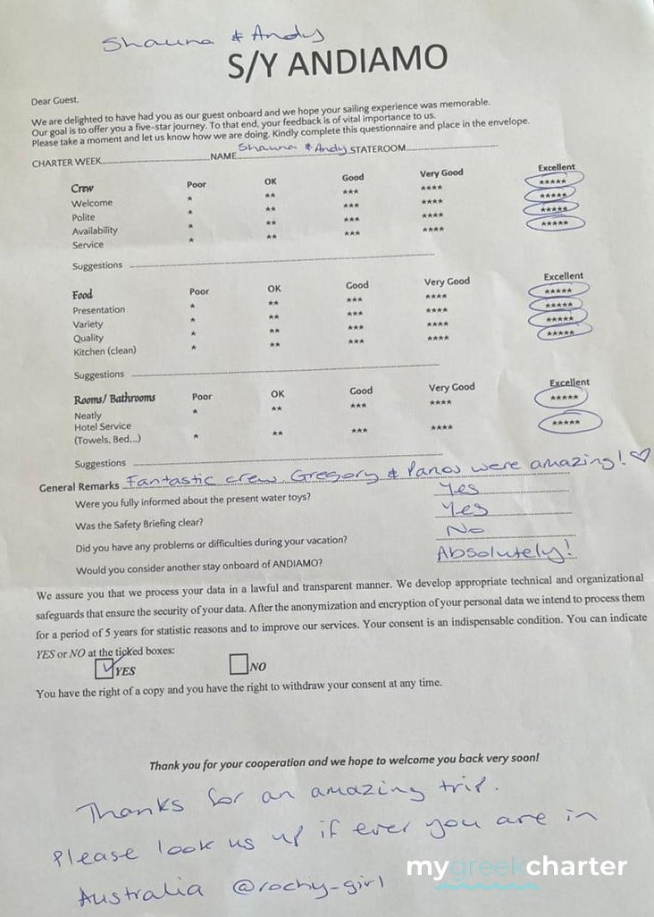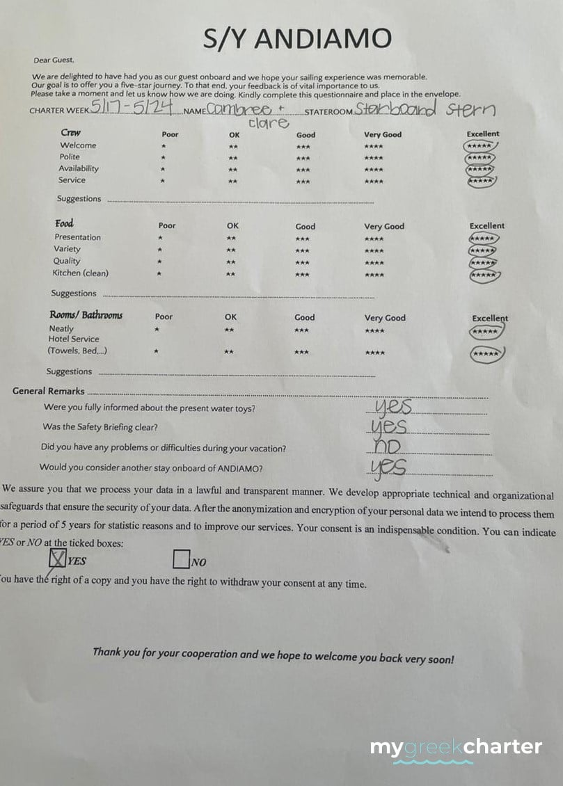 Grigoris is a very responsible and considerate sailor, always ensuring his guests’ privacy, yet being always attentive.