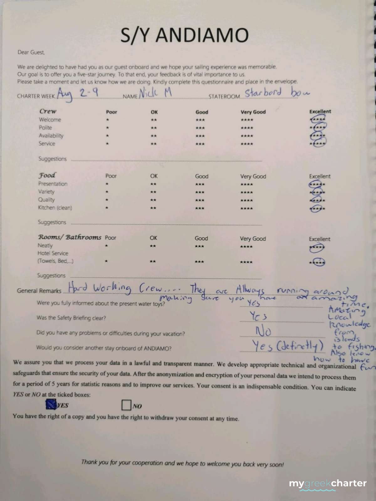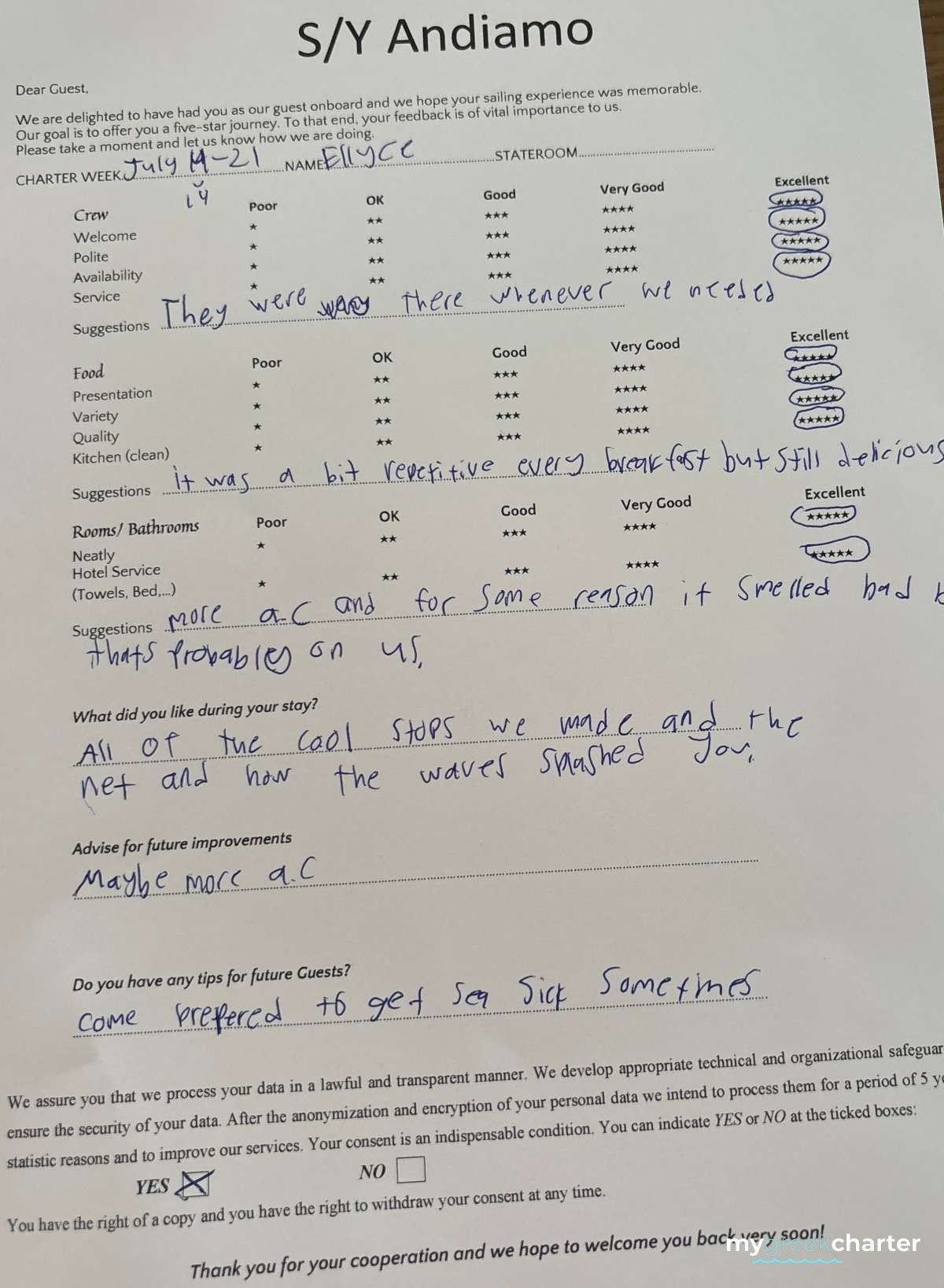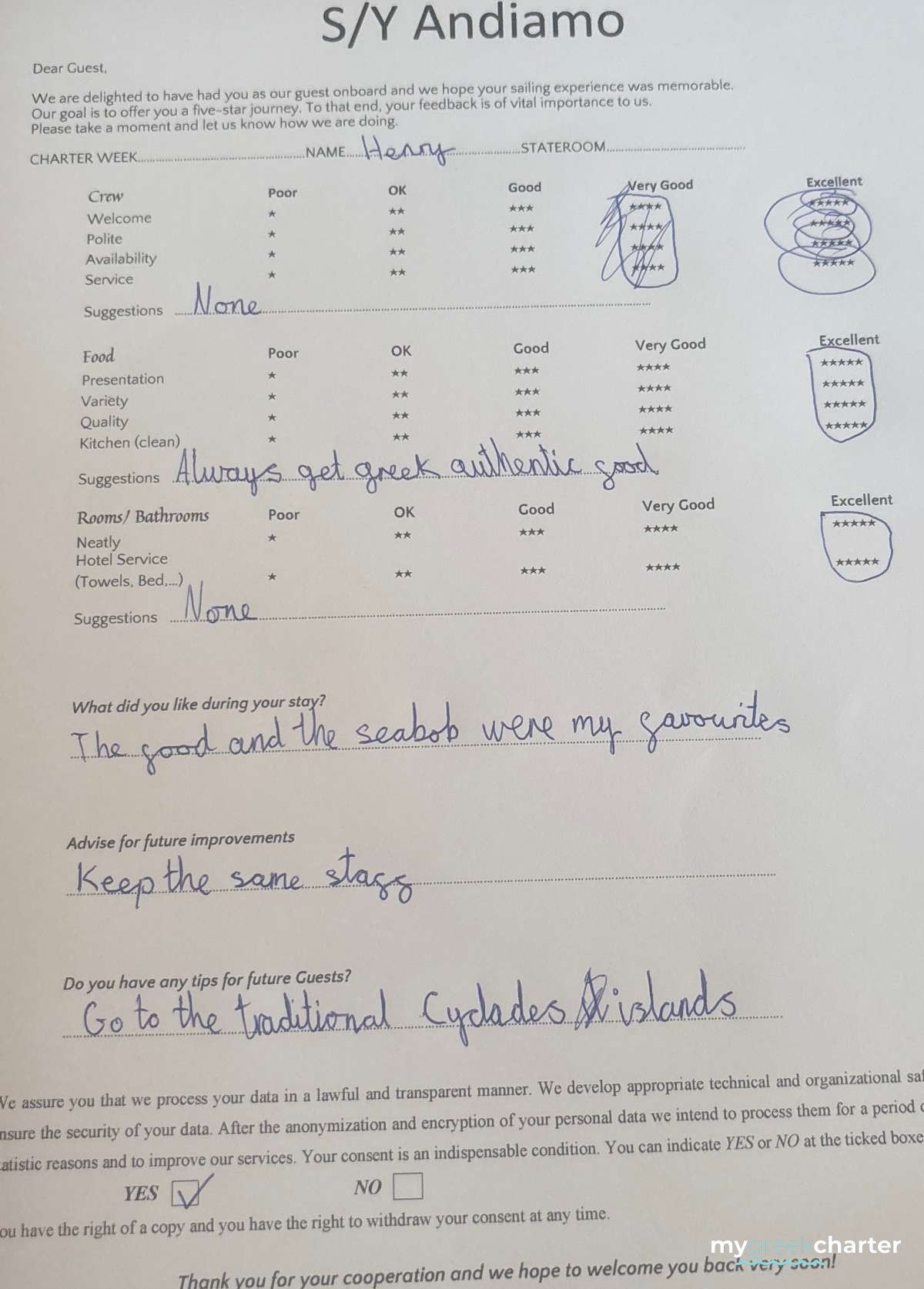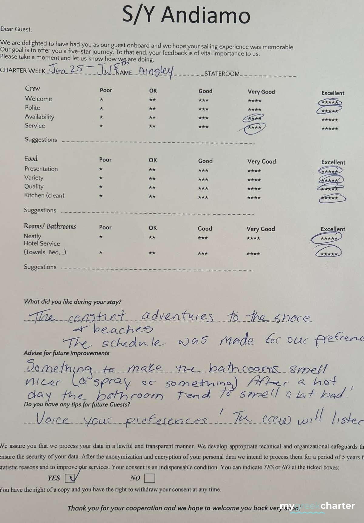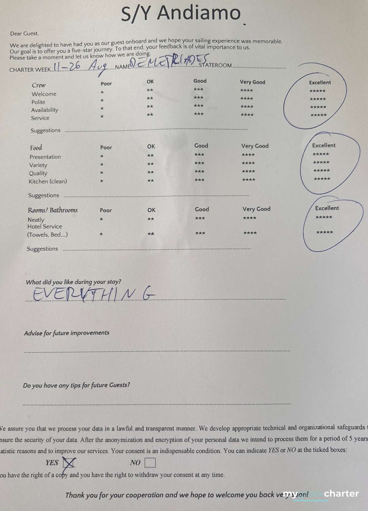 Grigoris is a very responsible and considerate sailor, always ensuring his guests’ privacy, yet being always attentive.