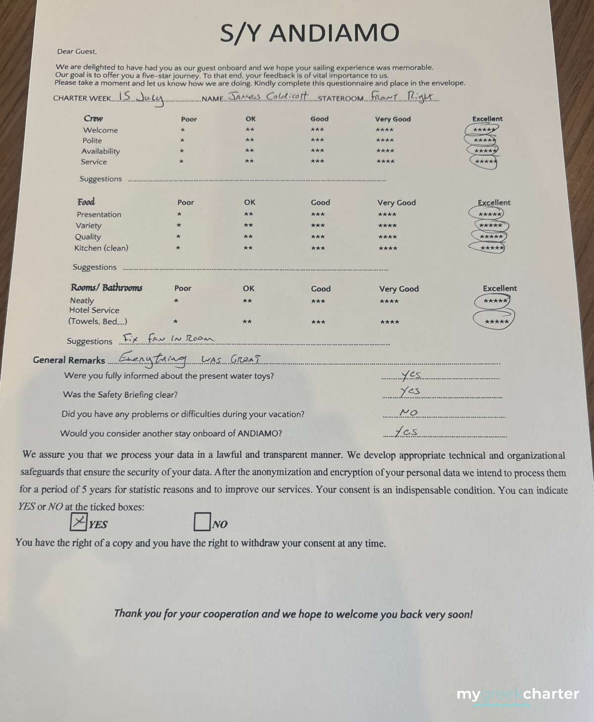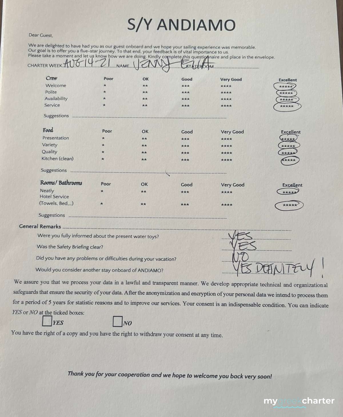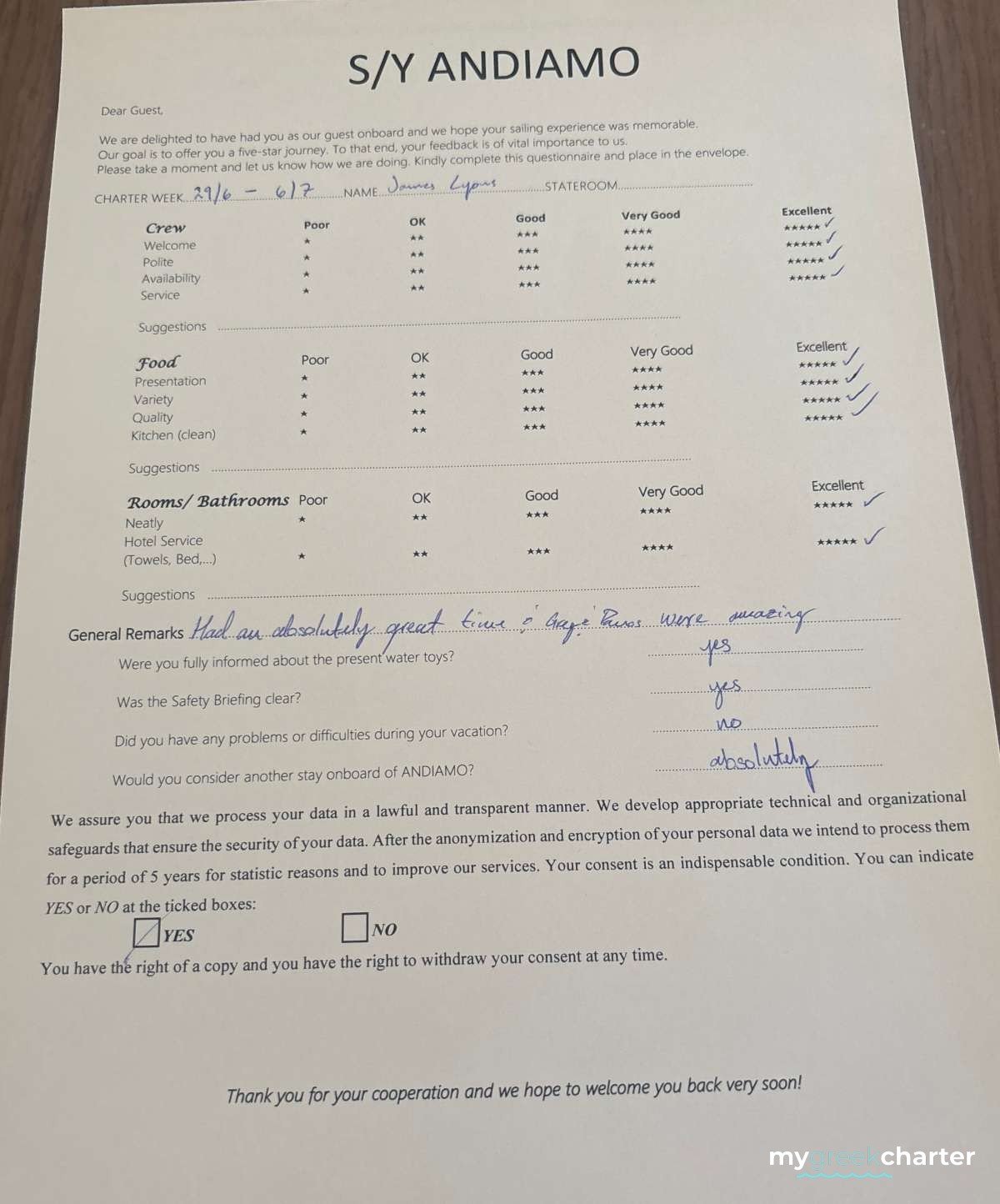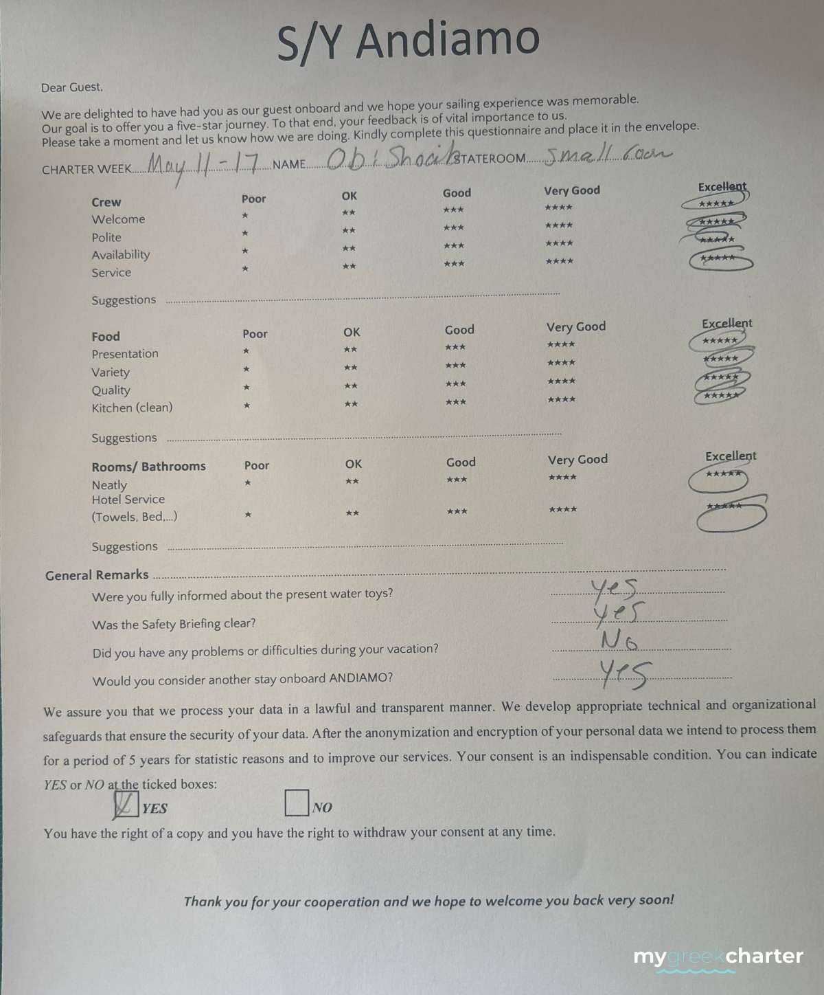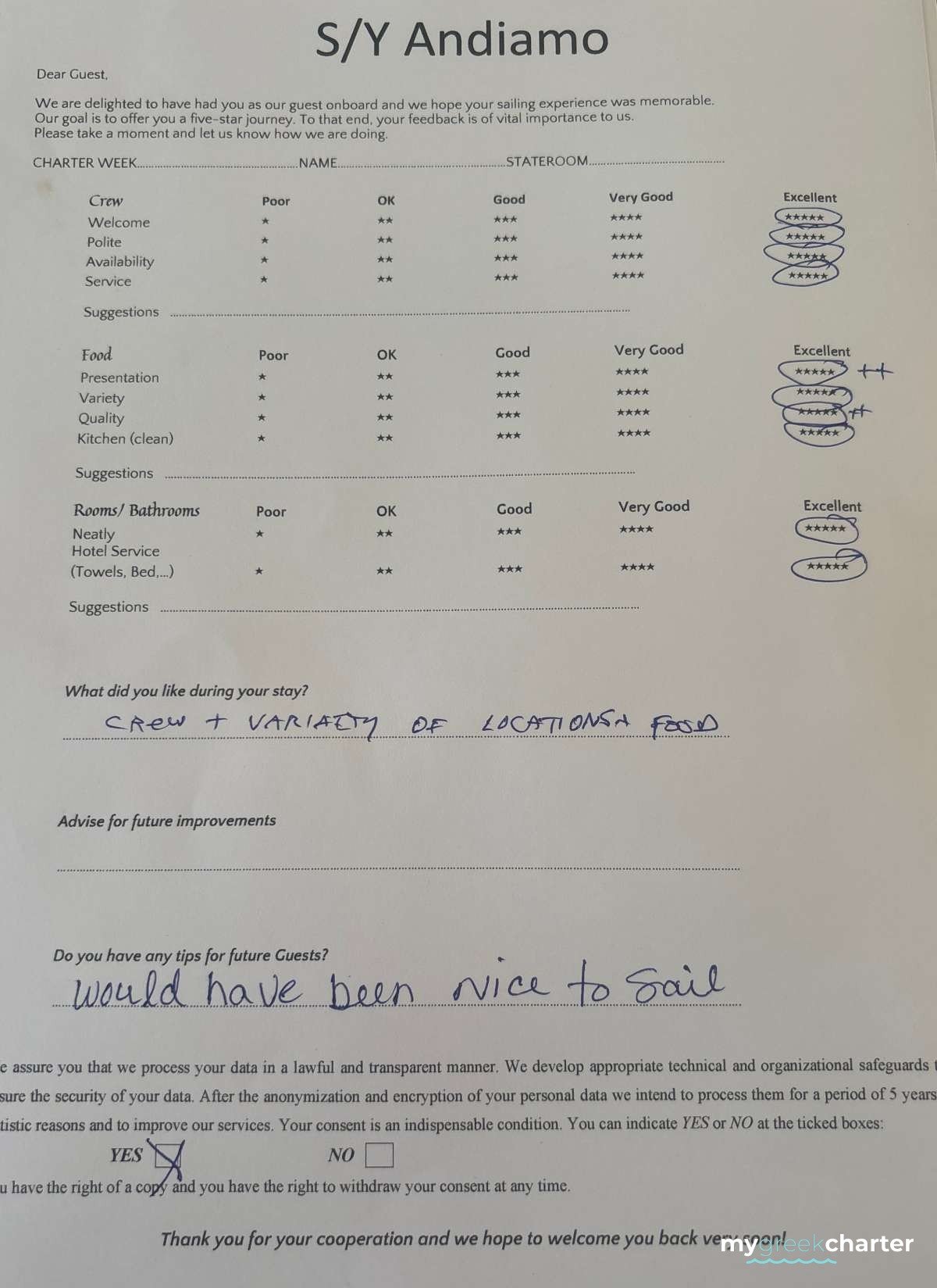 Grigoris is a very responsible and considerate sailor, always ensuring his guests’ privacy, yet being always attentive.