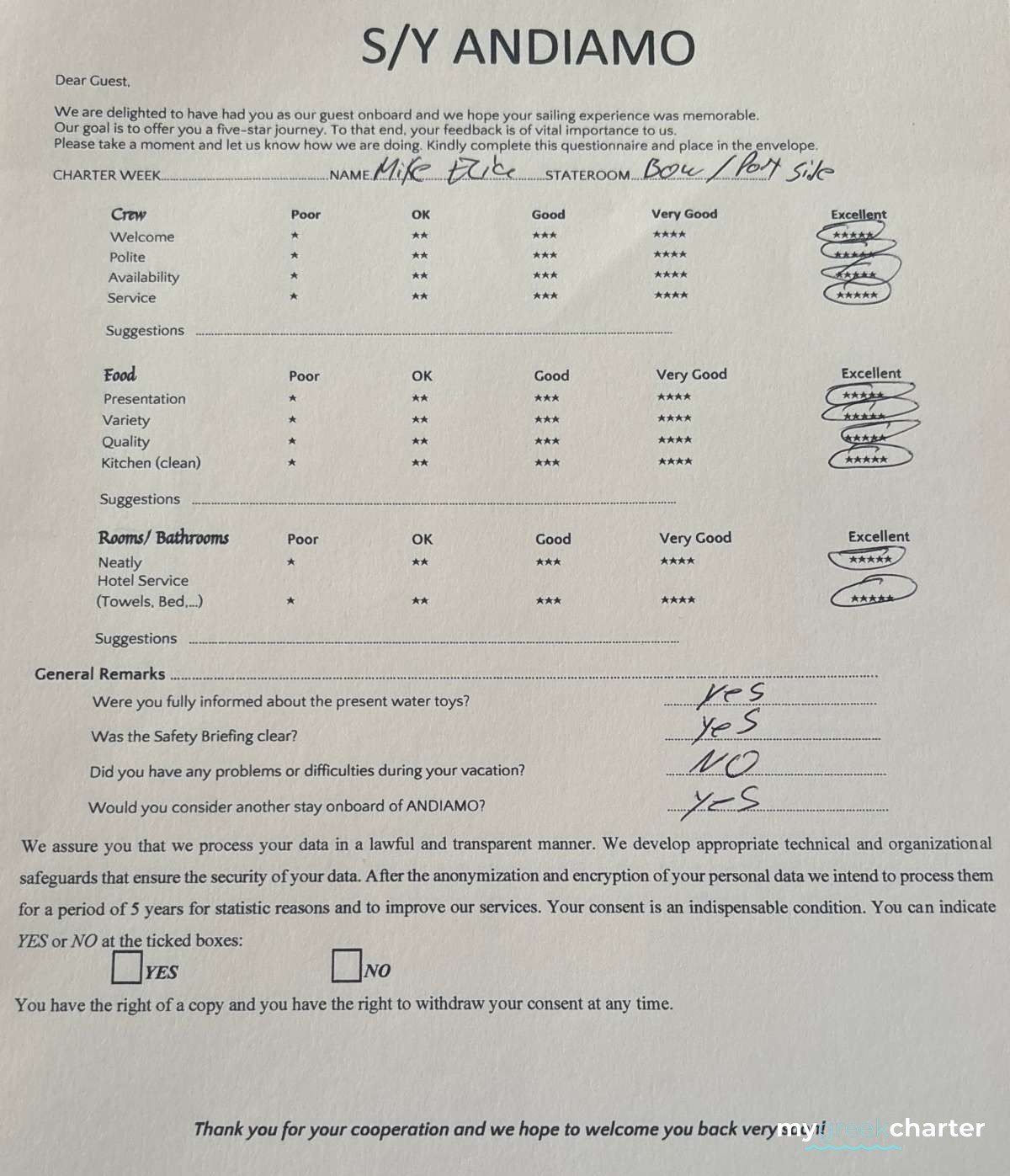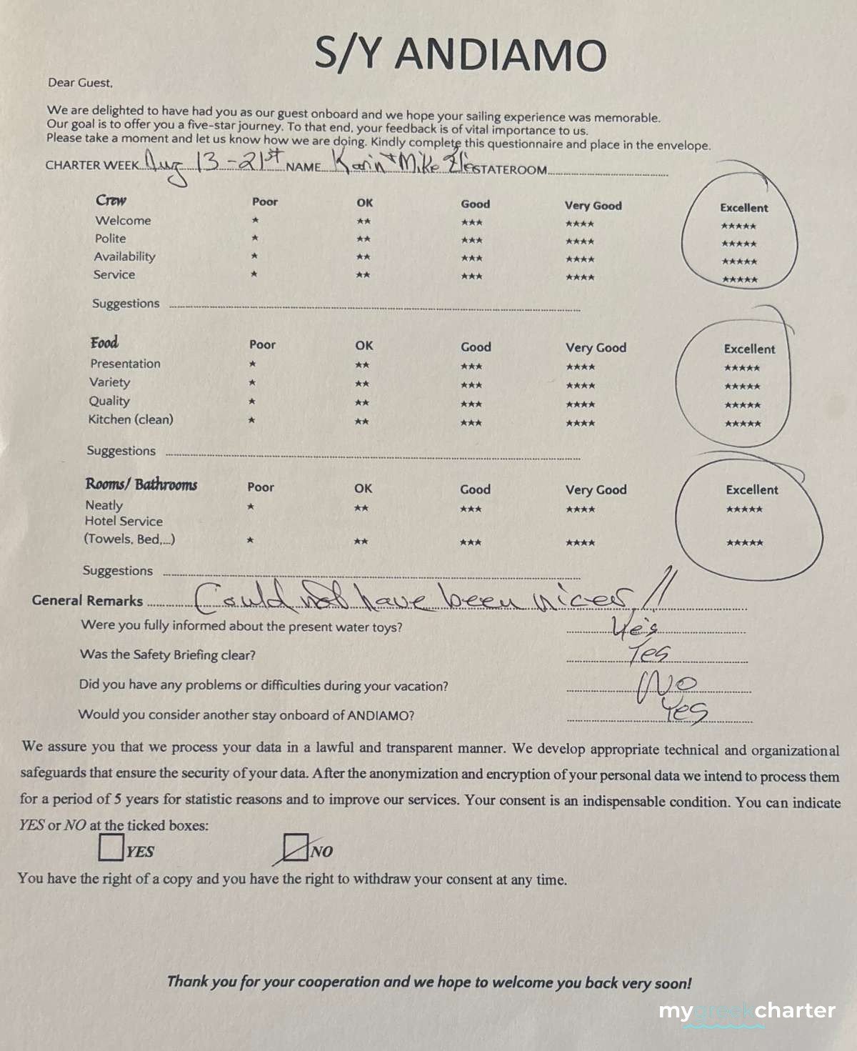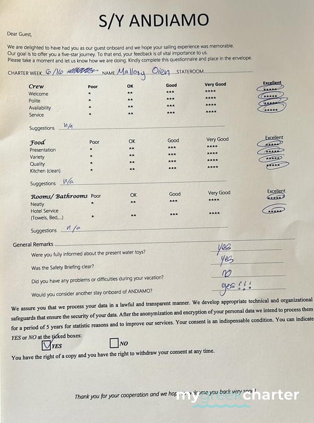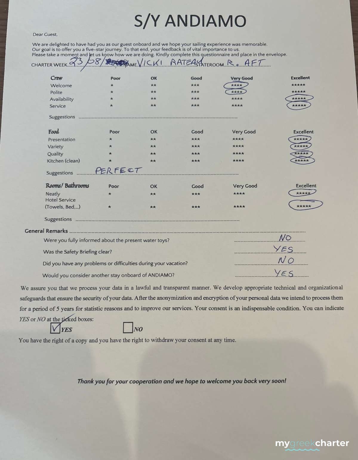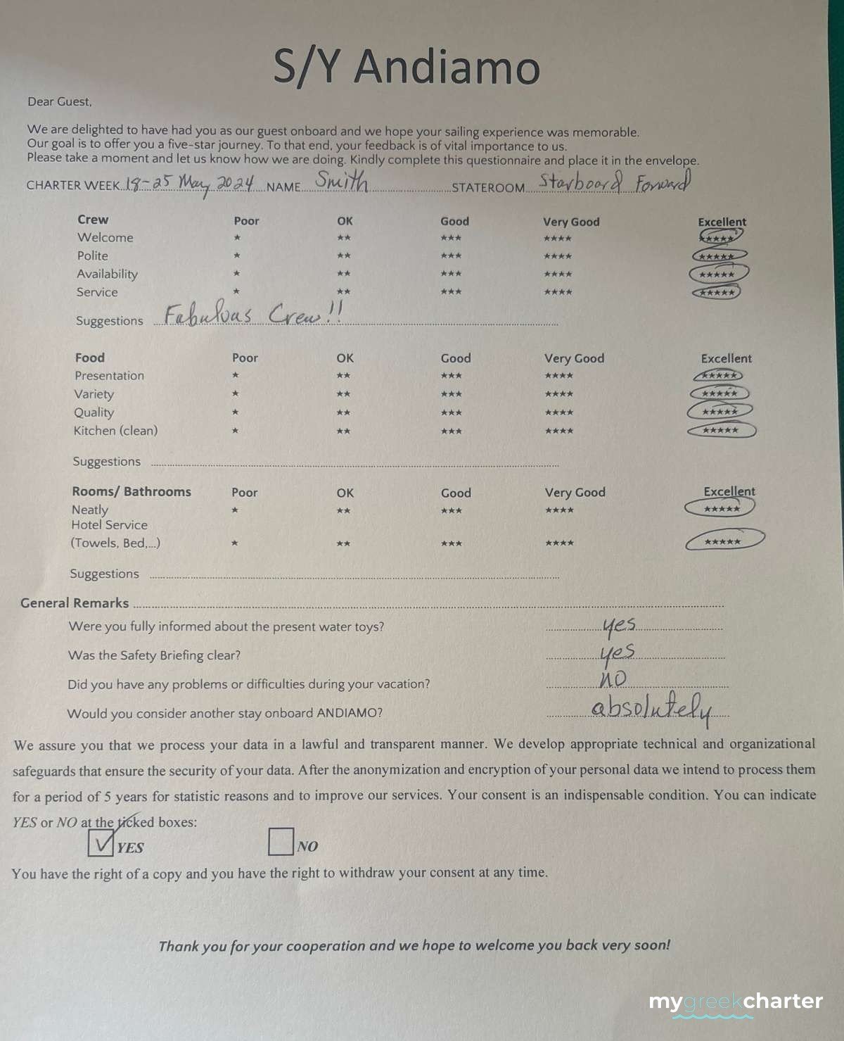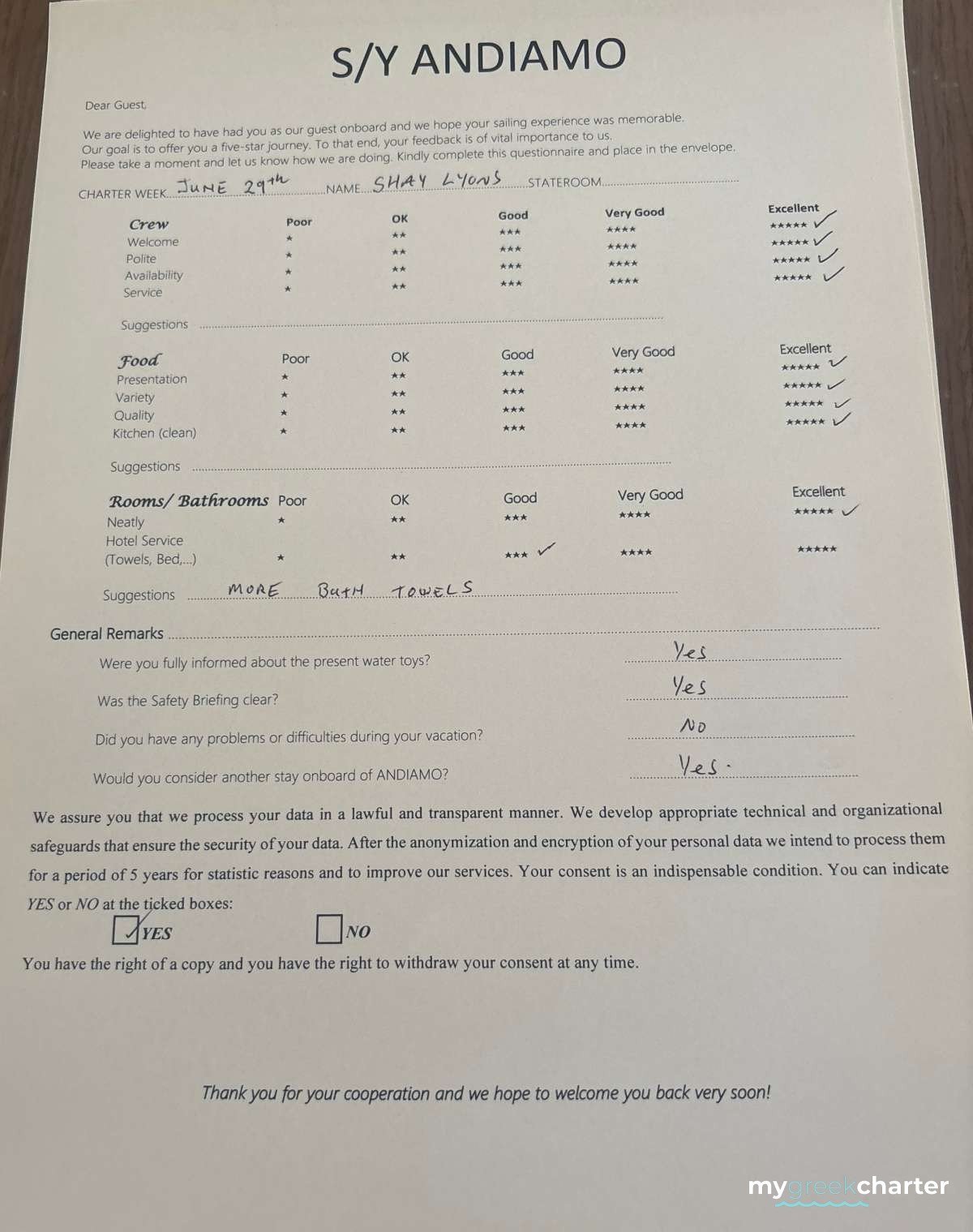 Grigoris is a very responsible and considerate sailor, always ensuring his guests’ privacy, yet being always attentive.