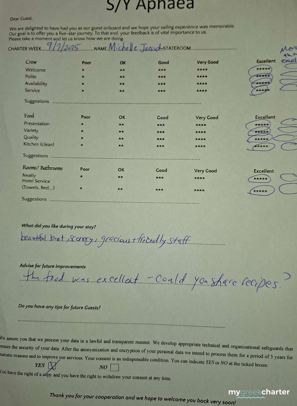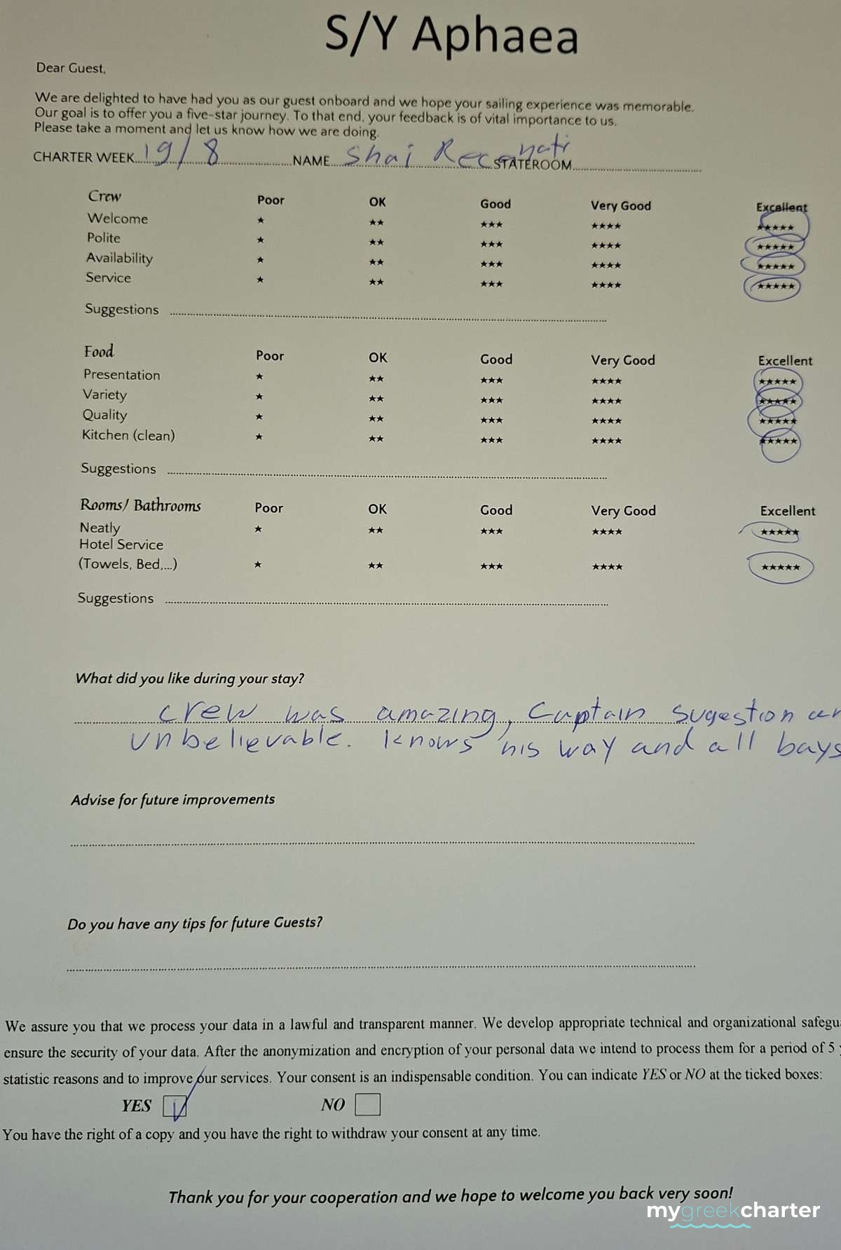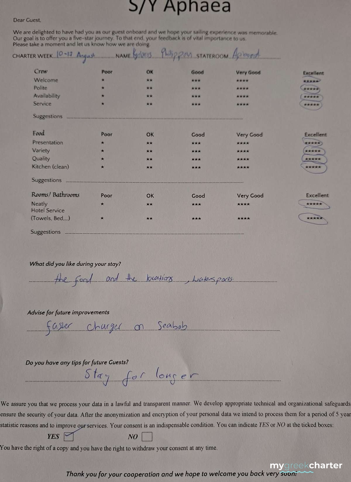 Your yachting experience is elevated by Captain Michalis' affable nature, fluency in both English and Spanish, and effective communication in both languages. Notably, his exceptional rapport with children adds an extra layer of warmth to the journey. Trust in Captain Michalis to guide you through a comfortable and welcoming vacation on the seas.