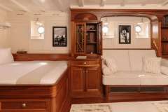 The sailboat features Engine : Yanmar 201 Diesel 555Kw Generators : - 50 Kva Yanmar - 115 Kva Yanmar engines and a generator.