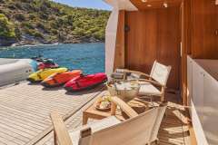 ETHOS is classified as a superyacht. The key part of the yacht, generous aft deck, leads to the the heart of the yacht - the main saloon. The main saloon is a gathering space to spend time when the weather is not ideal and offers a range of entertainment options. 5 spacious cabins are purposefully laid out for maximum privacy and comfort.