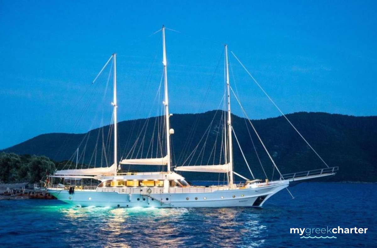 Advertised by DMA Yachting, the majestic charter yacht BELLA MARE is a 124 ft sailboat featuring a jetski and a hot tub. The most attractive features of BELLA MARE are her absolute comfort and experienced crew. BELLA MARE spends the summer season in Greece. She was constructed by the well-known ship builder BODRUM SHIPYARDS in 2005. A succesful refit was delivered in 2021. The well-planned yacht layout features 6 generous cabins and comfortably accommodates a maximum of 12 guests.