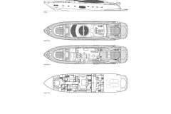 The motor yacht features 2 x 16V2000 M93 MTU diesel engines with 2400hp Consumptions: Economical 650 ltr/h @ 26 knots Generators 150 ltr/day per generator engines .
