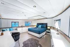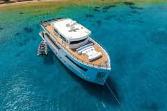 CALM DOWN is classified as a superyacht. The prominent section of the yacht, spacious aft deck, elegantly connects to the attractive and sleek main salon. The main saloon is a gathering space to spend time when the aft deck might not be as desirable (at port, private conversations) and boasts a number of entertainment options. 6 elegant cabins are thoughtfully spread out for maximum privacy and comfort.