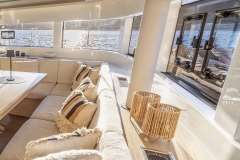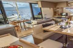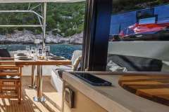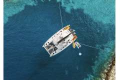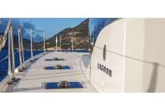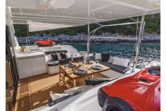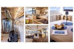 CELINA is classified primarily as a sailing catamaran. The yacht layout radiates from the main saloon, which connects to the aft deck. The aft deck features a variety of seating areas and that's where most of the delicious meals are served. The fascinating cabins are located in the 2 massive hulls. The cabins offer designer mattrace beds and feature ensuite bathrooms. Multiple portholes provide a connection with the natural world outside.