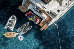 Hydraulic swim platform down, Seabob in the water, tubes and tow toys locked and loaded. This 2026 Lagoon 51 is built for guests who don’t come to “relax” so much as “wear the batteries out on the dinghy.”