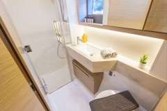 At 51 feet, she sleeps up to **10 guests in 5 cabins** (4 queens plus 1 double), so you can bring the full committee of friends without resorting to bunk-bed diplomacy. Full air-conditioning, premium bedding, and upgraded towels/amenities keep everything on the civilized side of adventure.
