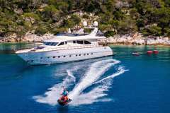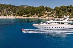 Presented by DMA Yachting, the impressive charter yacht DREAM is a 87 ft motor yacht featuring a jetski. The promiment features of DREAM are her most appealing features and culinary experience. DREAM spends the summer and winter season in Greece. She was constructed by the well-known ship builder Leopard in 2004. An elegant refit was fulfilled in 2025. The spacious yacht layout features 4 large cabins and comfortably accommodates a maximum of 9 guests.