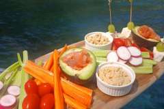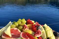 Hostess/cook offers breakfast ,lunch and snacks on board. Dinners are eaten on shore.