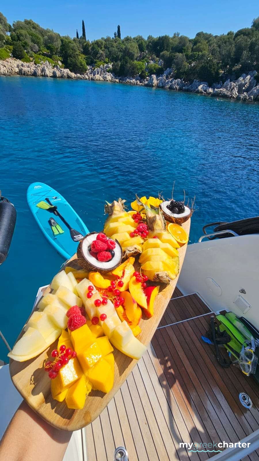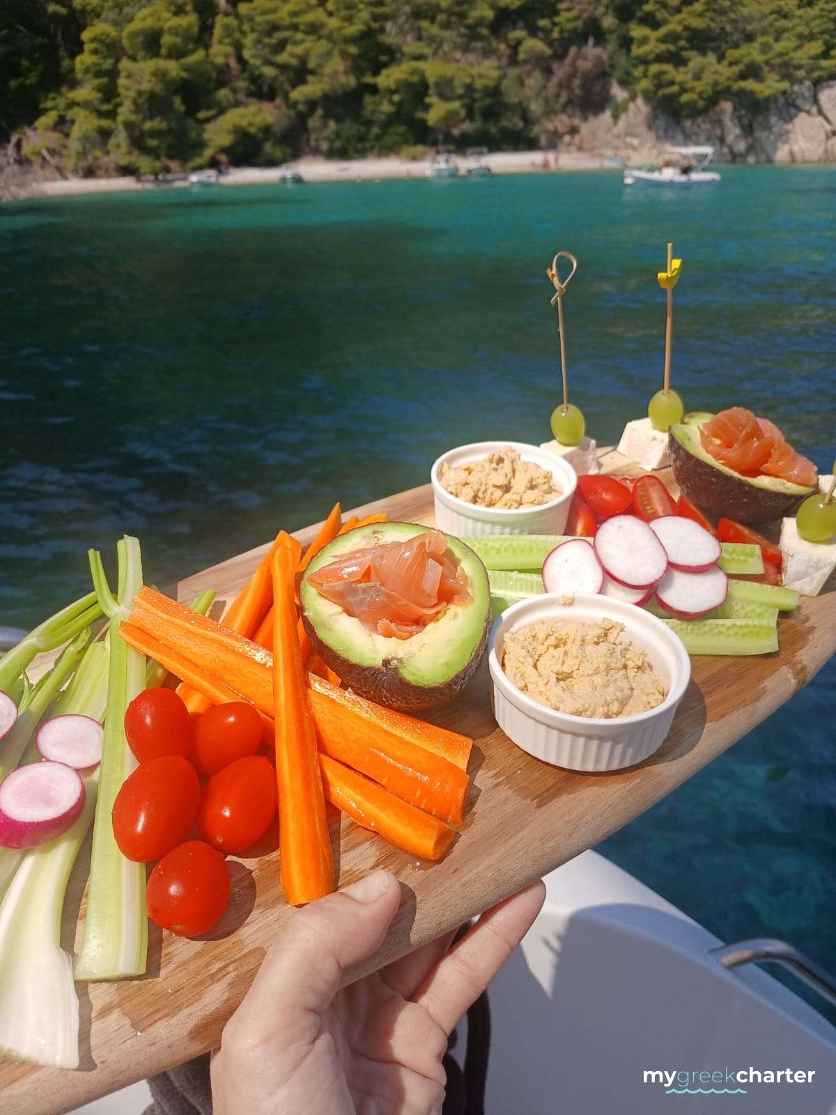 When Apostolis isn’t skippering he is either taking part in sailing races, fishing or else tending to his olives and vines in his village.
