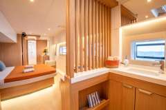 Endeavour is presented primarily as a sailing catamaran. The the core layout is spread out from the main saloon, which connects to the aft deck. The aft deck features a variety of seating areas and usually it is where you, as a charter guest, spend most of your time. The tasteful cabins are connected by stairs to the main saloon - roomy, comfortable and pleasant. The cabins are connected by stairs to the main saloon - roomy, comfortable and pleasant. Multiple portholes provide a connection with the natural world outside.