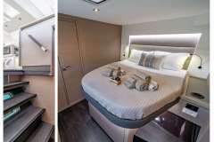 EQUINOX is introduced primarily as a sailing catamaran. The the heart of the yacht is the main saloon, which connects to the aft deck. The aft deck is generous, with a prominent dining and seating area and usually it is where you, as a charter guest, spend most of your time. The tastefully decorated cabins offer unbeatable views in the morning and are located just below deck. The cabins are located below the main saloon, connected by stairs (inquire about handicapped access). Multiple portholes add to the feeling of connection with the discovered environment.