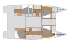 The yacht is also available for skipper only charter. Please contact us for an offer.What is the cabin arrangement of EQUINOX?