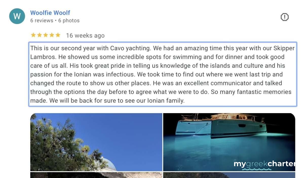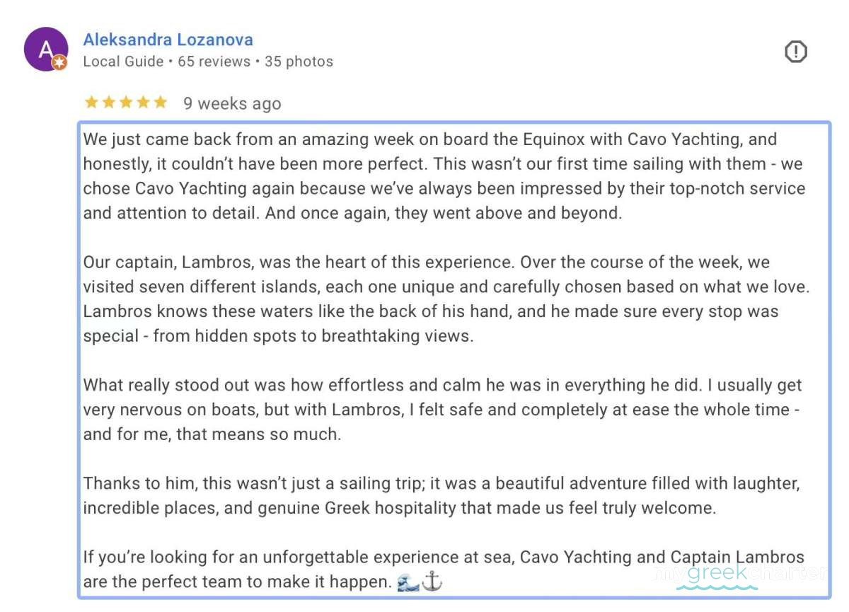 For a sailing catamaran like EQUINOX, the expected APA is 20% to 35% of the charter price (€2,180 - €3,815), making the charter cost €13,080 to €14,715. Exact amount will be confirmed after inquiry.