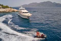 Introduced by DMA Yachting, the astonishing charter yacht ESTIA POSEIDON is a 85 ft motor yacht featuring a jetski. The highlights of ESTIA POSEIDON are her most appealing features and alfresco dining areas. ESTIA POSEIDON spends the summer and winter season in Greece. She was constructed by the famous yacht builder Falcon in 2006. A succesful refit was finalized in 2021. The expansive yacht layout features 4 generous cabins and comfortably accommodates a group of 10 guests.