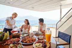 ESTIA POSEIDON is classified as a superyacht. The key part of the boat -spacious aft deck, is right next to the meticulously composed main saloon. The main saloon is a friendly space to spend time when the aft deck might not be as desirable (at port, private conversations) and offers a range of entertainment options.
