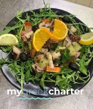 Prepares Mediterranean menus with a modern twist and can adapt to special requests. Brings experience from Greece and London kitchens, including Hilton London, to keep meal timing steady during busy charter days.
