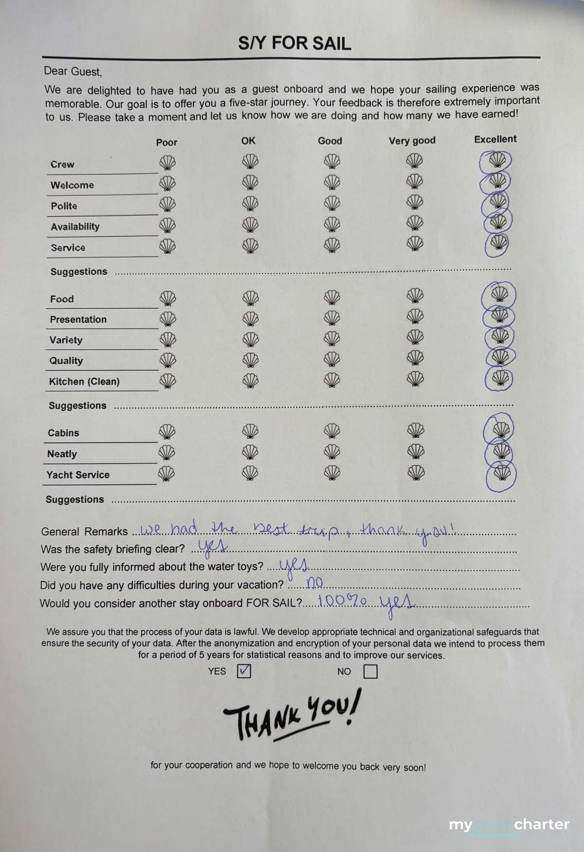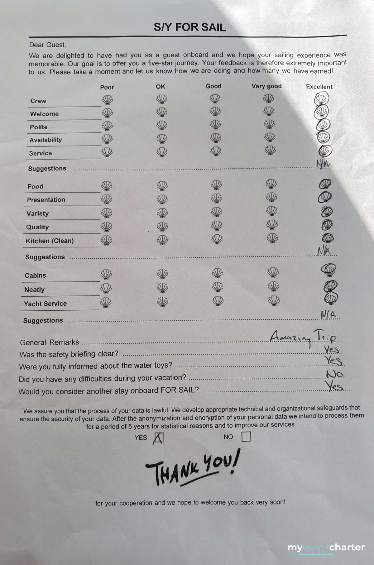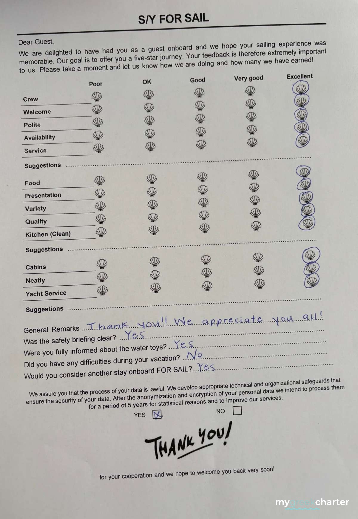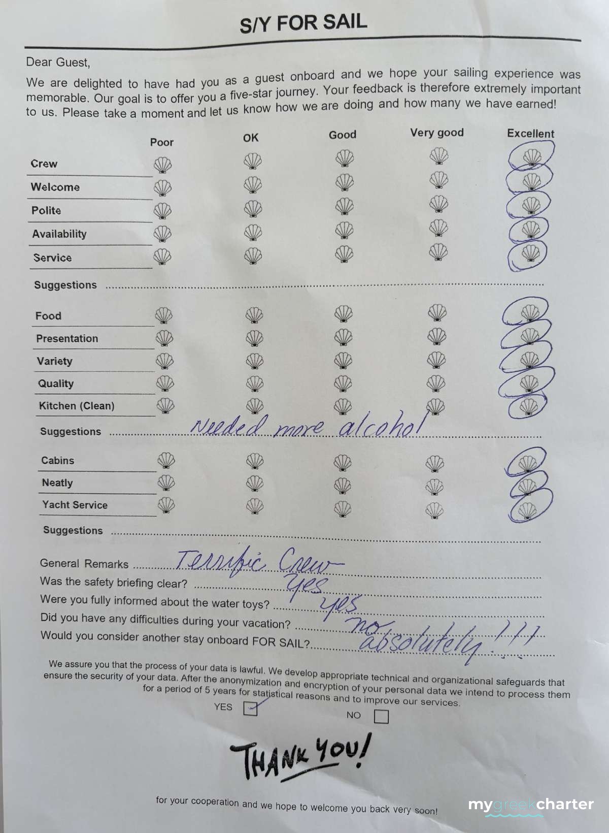 For a sailing catamaran like FOR SAIL, the expected APA is 20% to 35% of the charter price (€3,400 - €5,950), making the charter cost €20,400 to €22,950. Exact amount will be confirmed after inquiry.