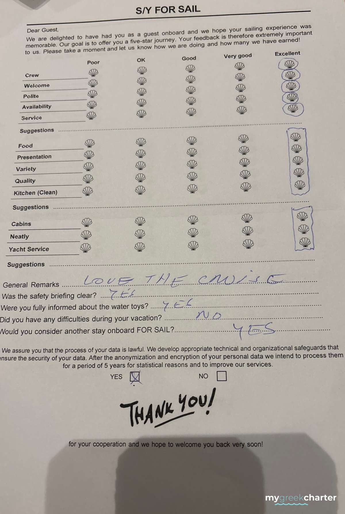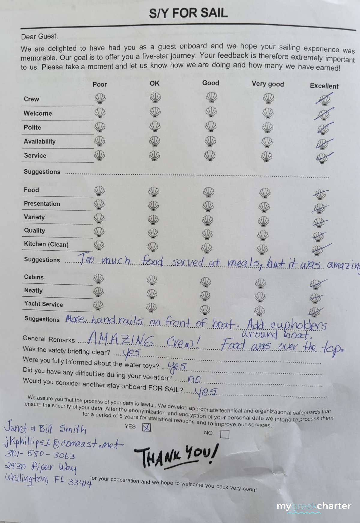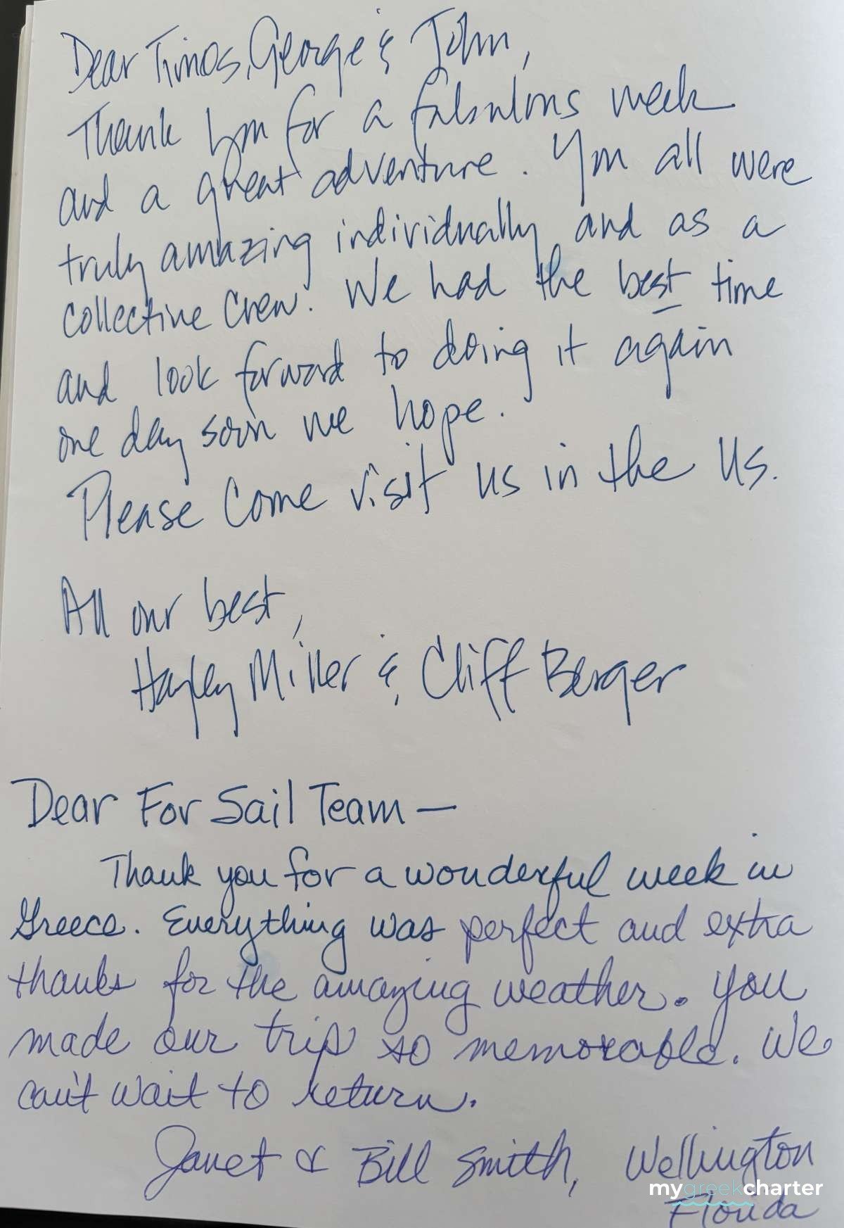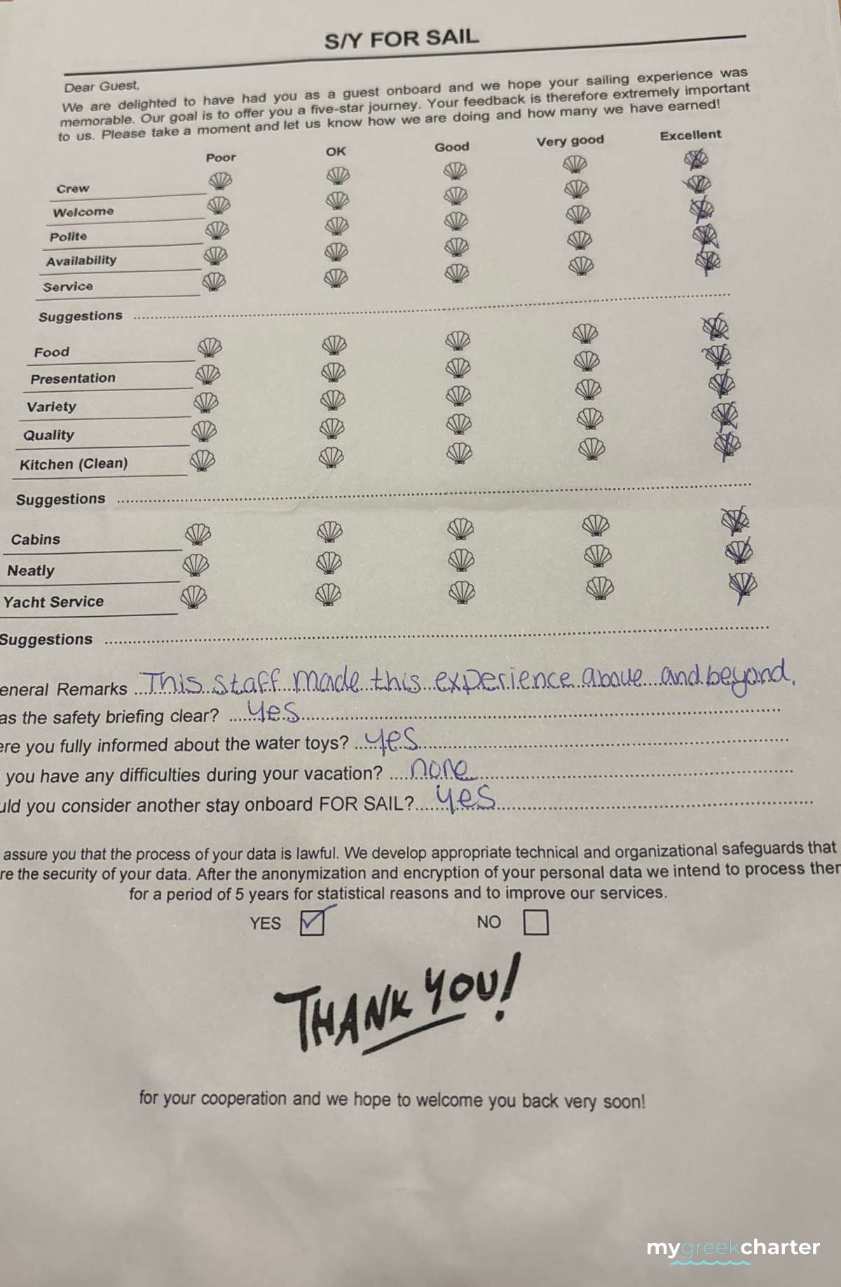 * Please note that, due to logistics, charters with embarkation or disembarkation in Santorini will be charged one extra day.