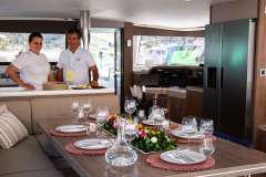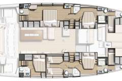Fortune One is classified primarily as a sailing catamaran. The the core layout is spread out from the main saloon, which connects to the aft deck. The aft deck is expansive, with a comfortable dining and seating area and usually it is where you, as a charter guest, spend most of your time. The immersive cabins are connected by stairs to the main saloon - roomy, comfortable and pleasant. The cabins are connected by stairs to the main saloon - roomy, comfortable and pleasant. Multiple portholes offer desirable views, while providing privacy if needed.