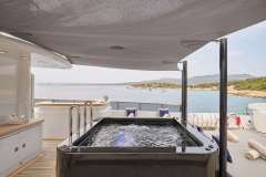 Relax and sip cocktails in a large Jacuzzi surrounded by sunpads, perfect for luxury lounging. -
