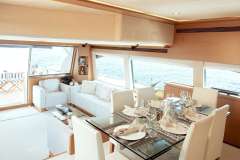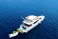Introduced by DMA Yachting, the majestic charter yacht IRENE is a 78 ft motor yacht. The main attractions of IRENE are her elegant profile and interconnection with the sea. IRENE spends the summer and winter season in Greece. She was delivered by the well-known ship builder Ferretti in 2006. A well-done refit was completed in 2023. The well-planned yacht layout features 4 large cabins and comfortably accommodates a group of 9 guests.