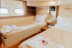 Two double cabins with queen-size bedsTwo twin cabins with single beds, one of which includes an additional Pullman berth