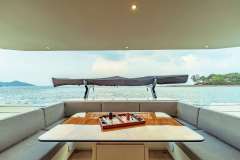 JACK’s exterior spaces are just as spectacular. The large aft deck features plush sofas and a welcoming al fresco dining area—ideal for meals under the sun or starlit evenings with friends and family. Forward, cushioned sun pads provide the perfect spot to unwind, soak in the warmth, and enjoy uninterrupted views of the horizon.